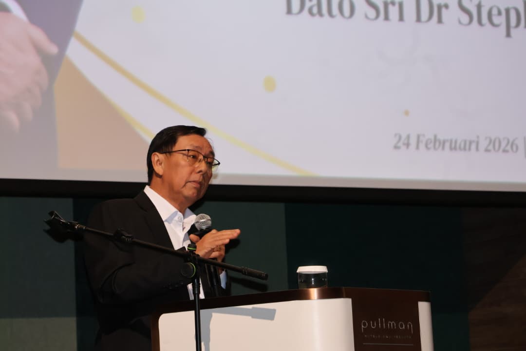 Dennis talks to the media at the TEGAS Riang Raya Aidilfitri Open House 2025.