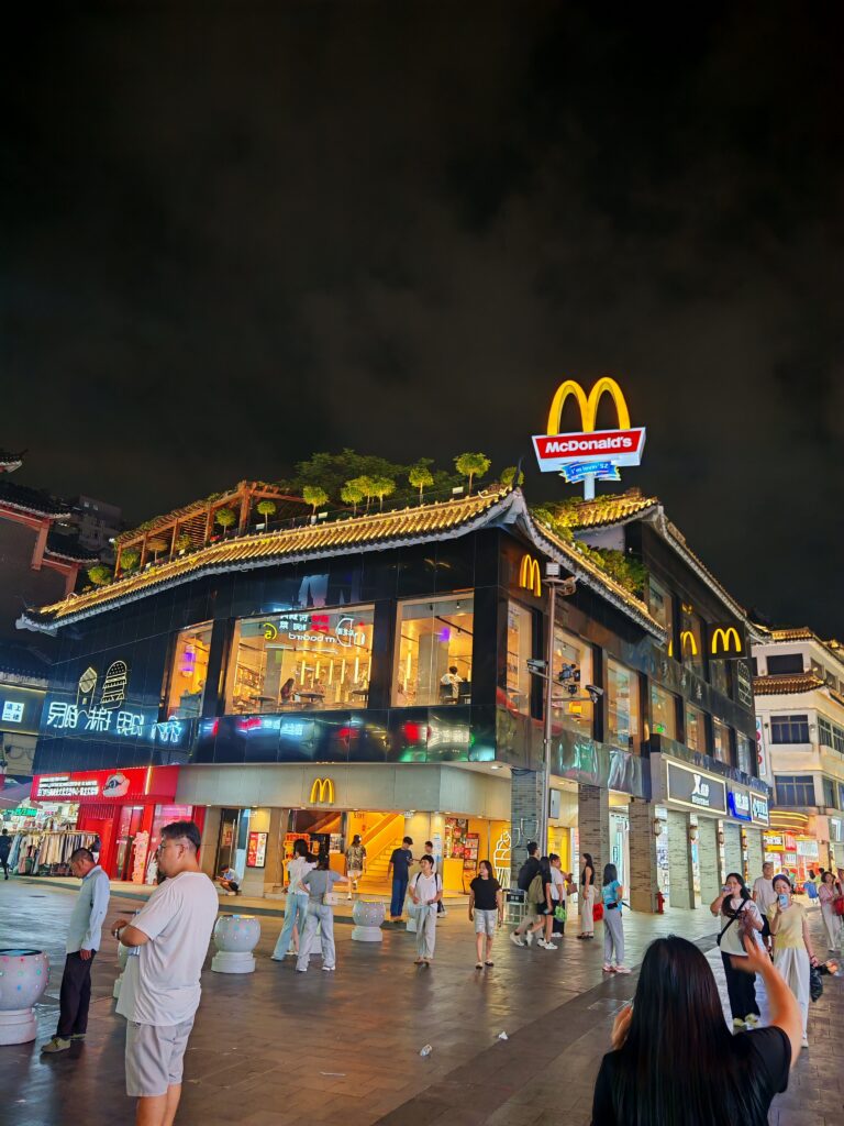 Upon leaving the train and entering Shenzhen’s metro, we immediately rode to our hotel’s vicinity. To our surprise, the city was a mix of metropolis and heritage. Even the McDonald’s on Dongmen Pedestrian Street was a living archive of Chinese heritage architecture. The McDonald’s there was also the first of the franchise to open in China in 1990. Dongmen itself is an ancient area known as “Laojie” or old street, serving as an economic hub for over 300 years.