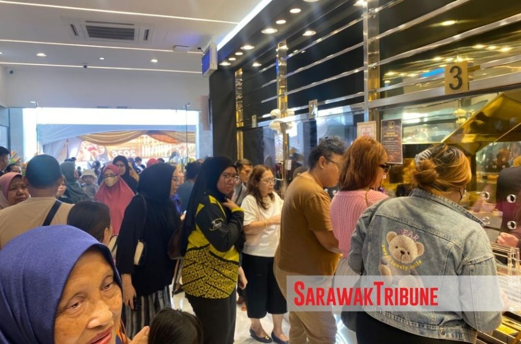 Customers make their way into Chegu Aiman Gold and Gadget Kota Samarahan during its opening. Photo: Rasheeqa Bahida