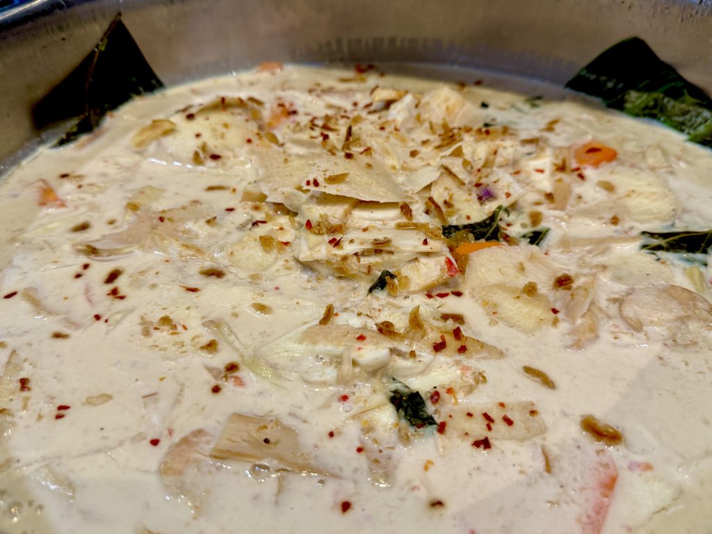 Another highlight that evokes the kampung kitchen is Umbut Nior Masak Lemak Putih. Tender coconut shoots, gently simmered in creamy coconut gravy, provide a mild, soothing contrast to the spicier dishes on the table.