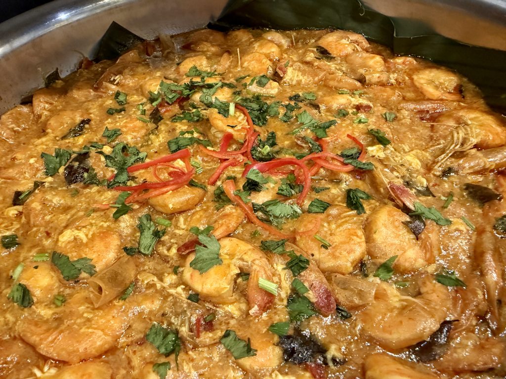 Among the highlights is Udang Cili Ala Singapura – plump prawns coated in a glossy, tangy-sweet chilli sauce that practically begs for extra rice to soak up every drop.