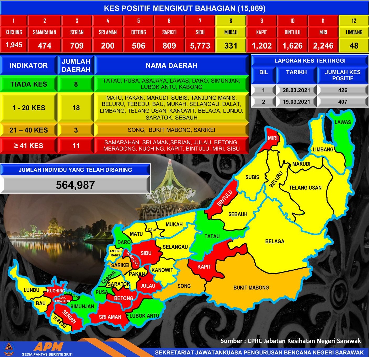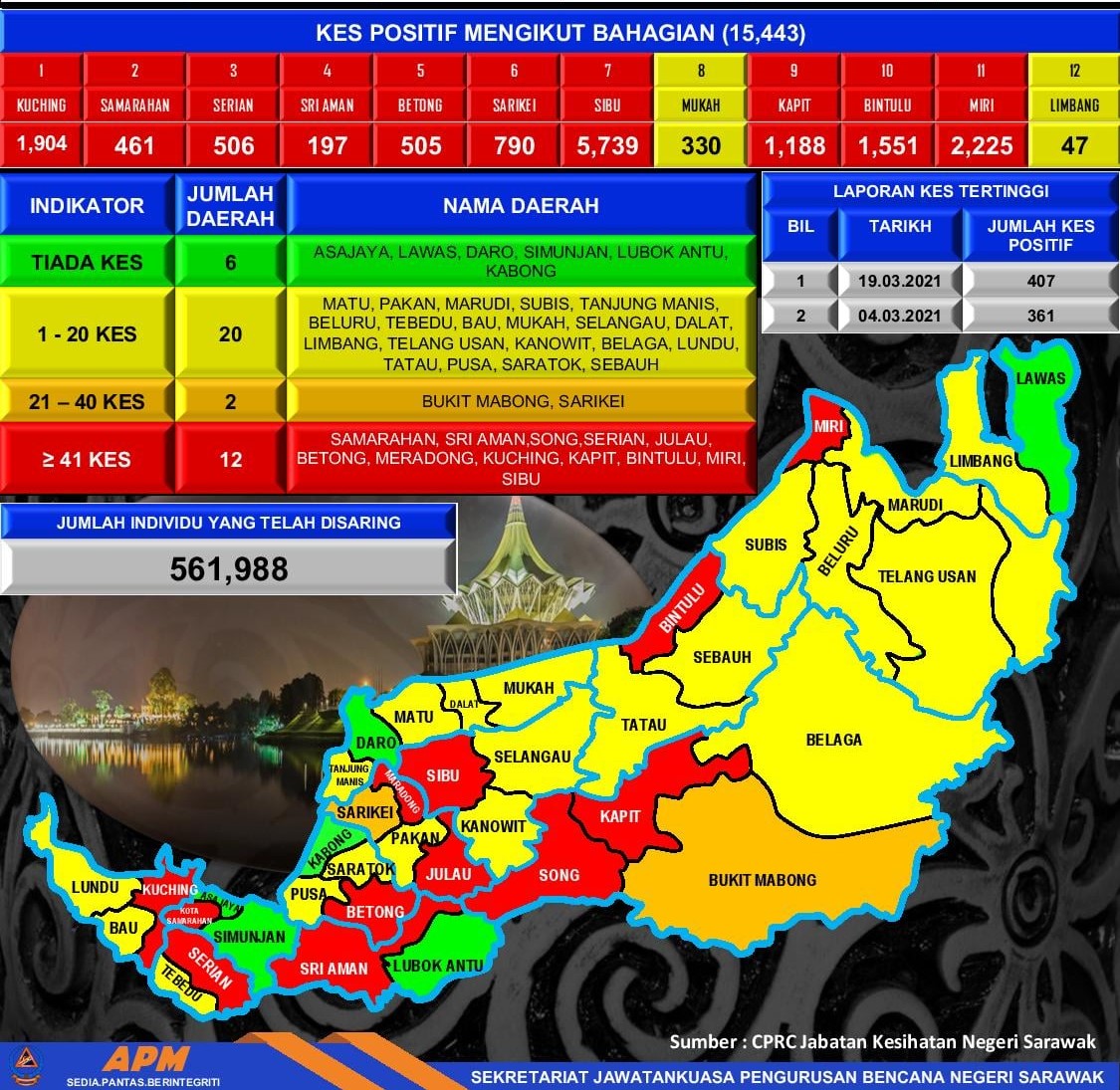 KUCHING: The state recorded 290 Covid-19 positive cases today (Apr 3) bringing the total number of cases to 17,135 to date. Sarawak Disaster Management Committee (SDMC) in a statement said, 86 cases were reported in Kuching; Bintulu (81); Miri (36); Sibu (22); Serian (20); Samarahan (seven); Kapit and Subis (six