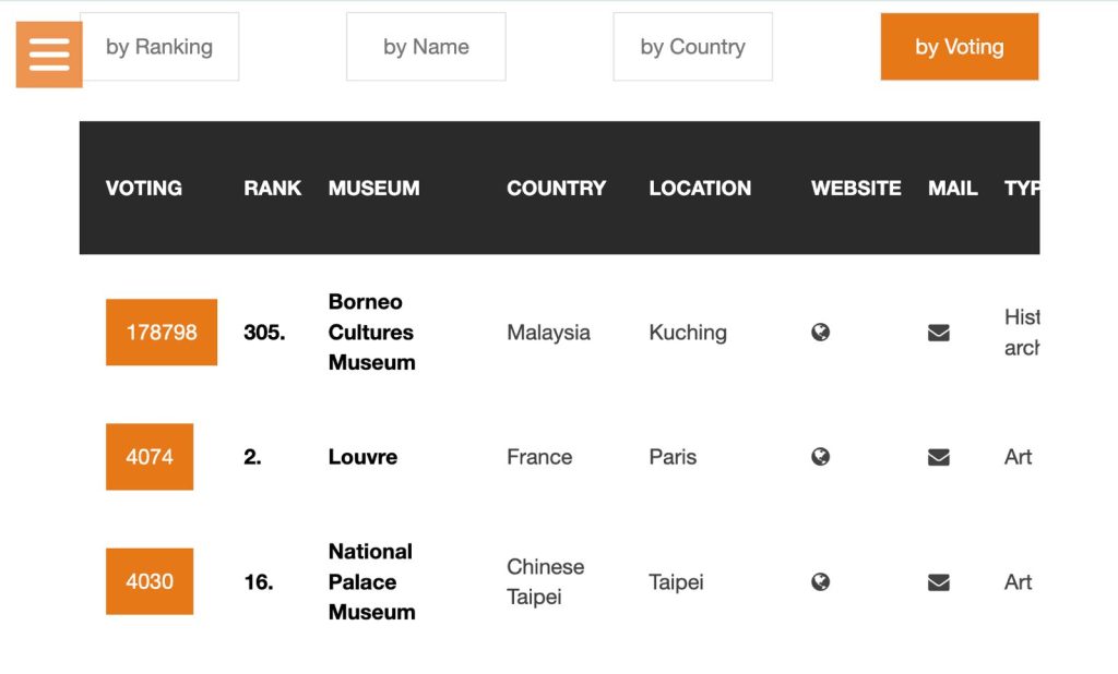 Meanwhile, voting for the museum can be done on the website at https://www.museumworldranking.net/?by=voting.