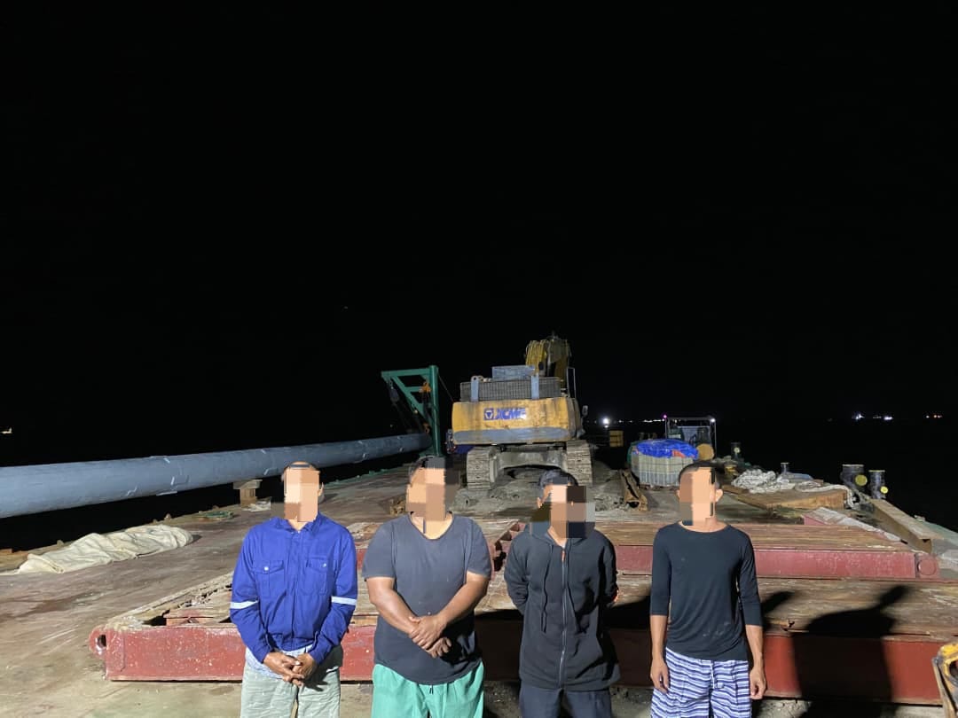 MIRI: Two local barges operating off the coast of Miri were detained during a pre-dawn enforcement operation over multiple regulatory and immigration violations. The Malaysian