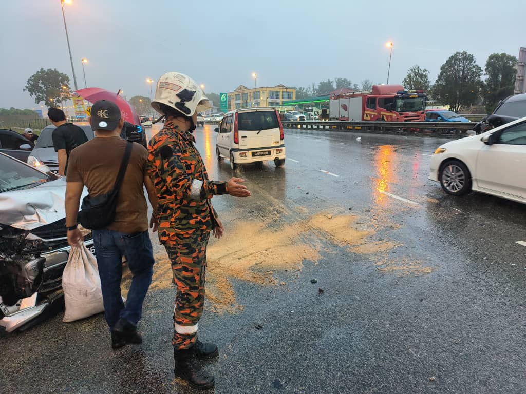 KUCHING: Three local men sustained injuries following a two-vehicle collision near the Mile 7 flyover, Jalan Penrissen on Saturday. The accident, which involved a Honda