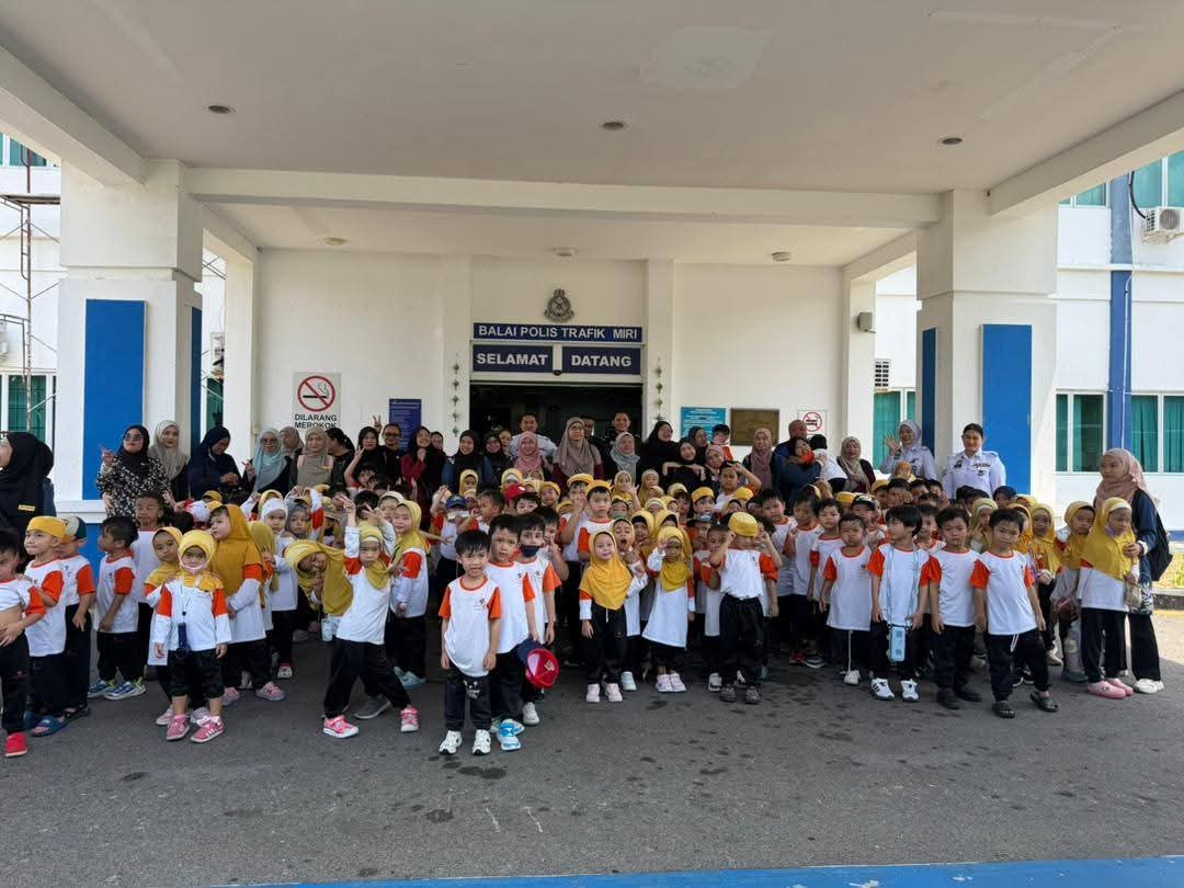 A total of 130 pupils and 20 teachers from Tadika Khalifah Jannah, Little Caliphs Miri, took part in the visit to the Traffic Police Station at the Miri District Police Headquarters, which began at 9:00 am.