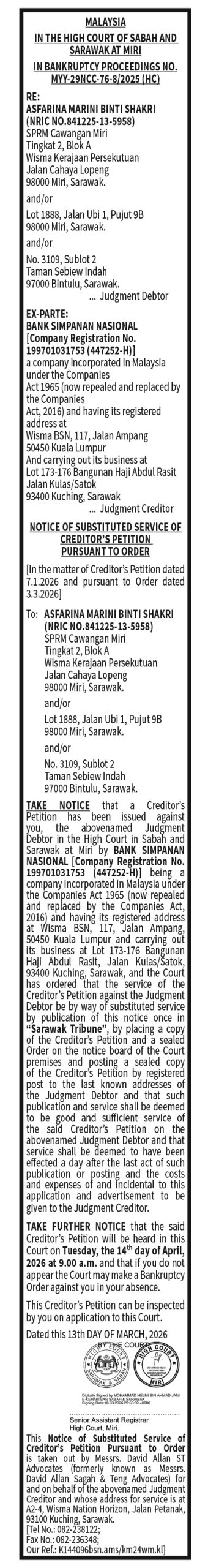 COURT DAVID ALLAN (ASFARINA VS BSN)