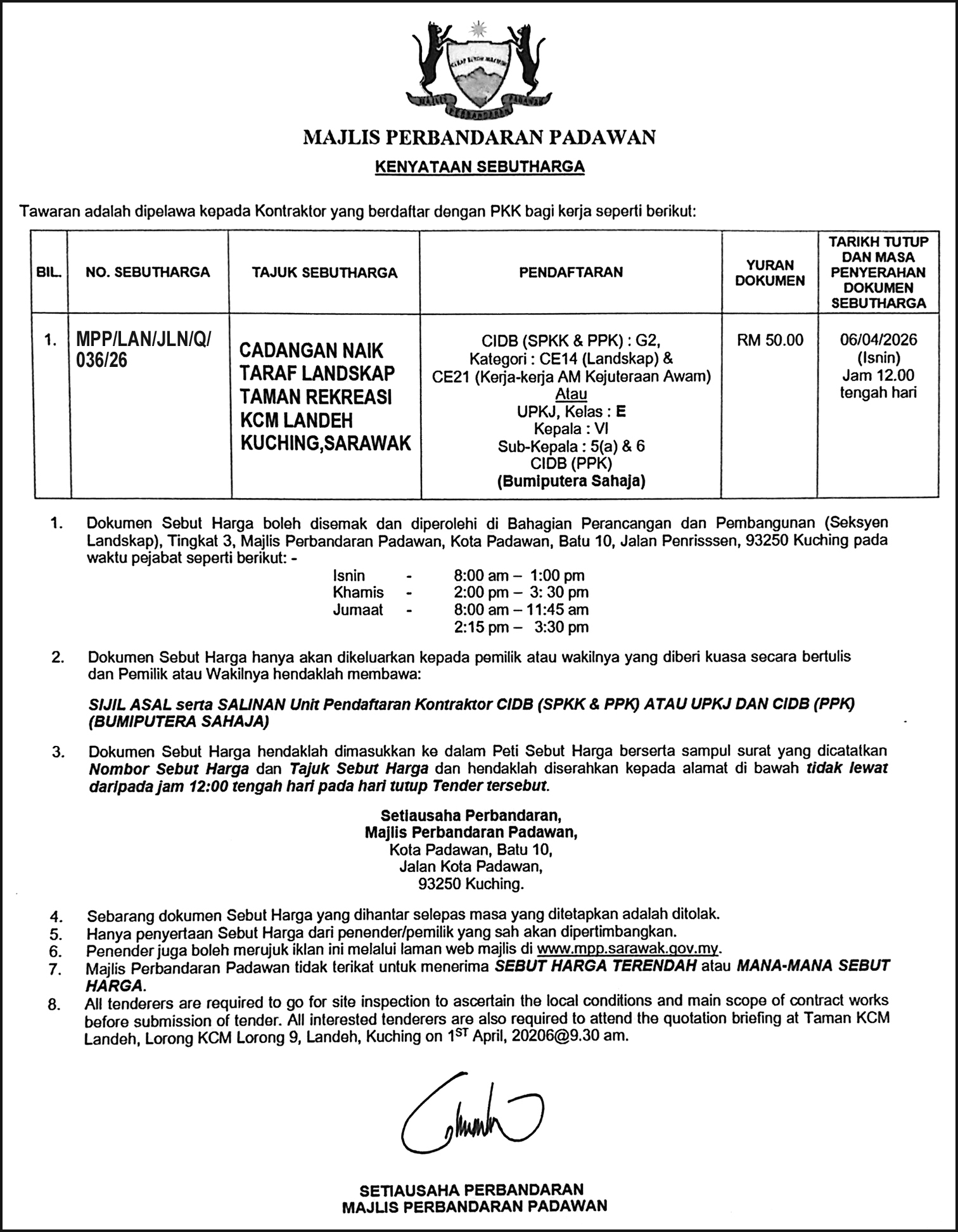 MPKS TENDER NOTICE