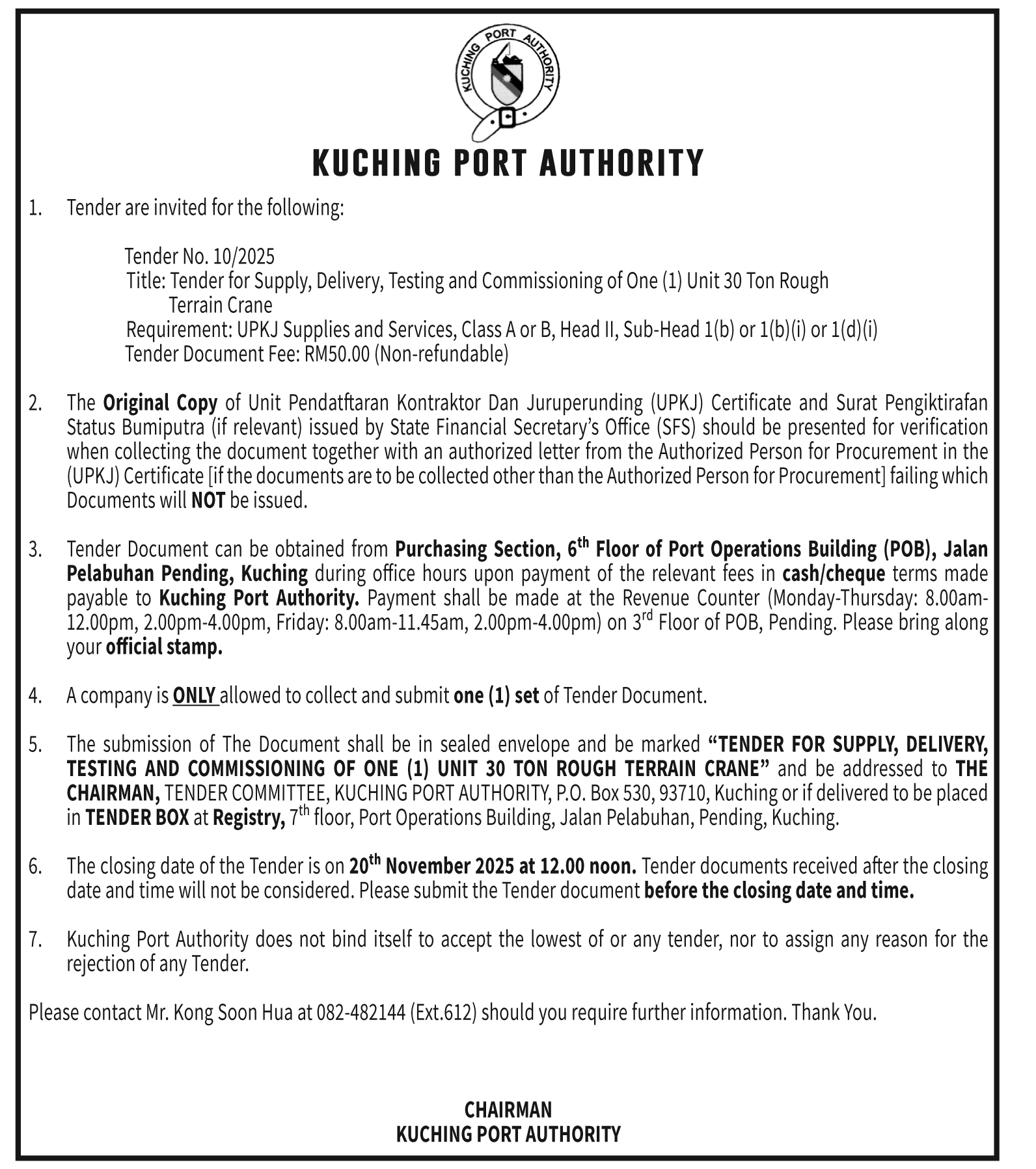KUCHING PORT AUTHORITY TENDER