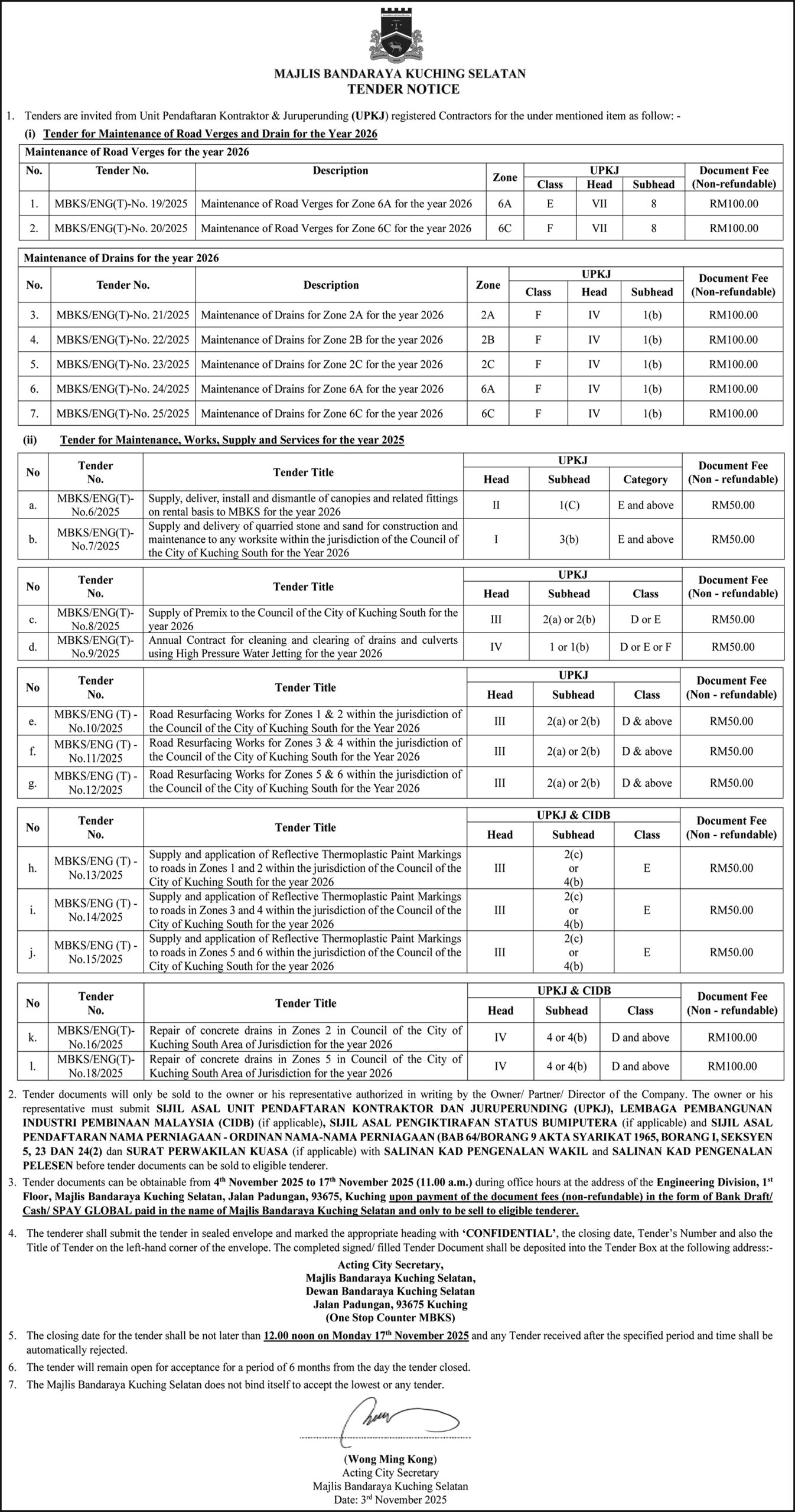 MBKS TENDER NOTICE