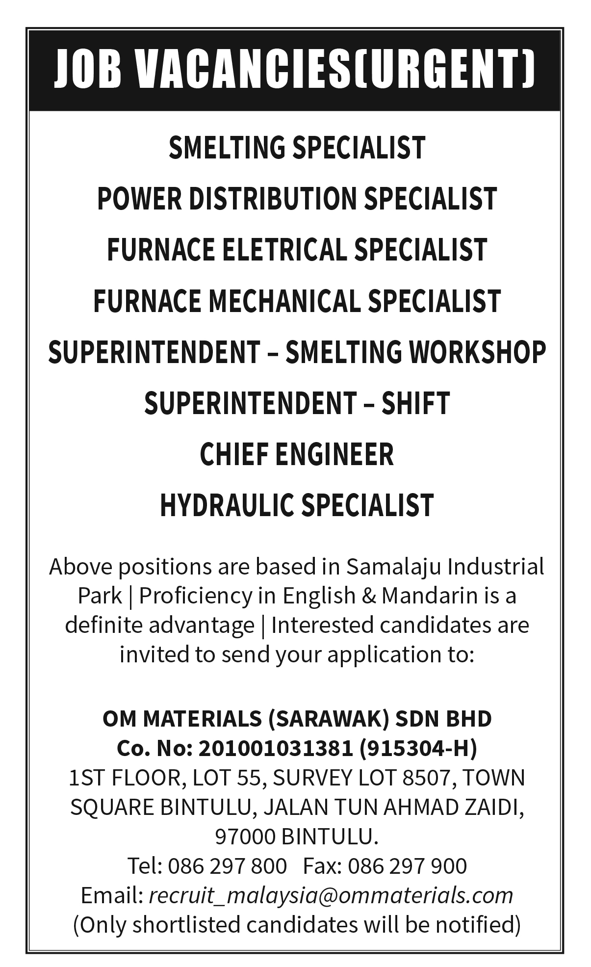 VACANCY ( OM MATERIAL )