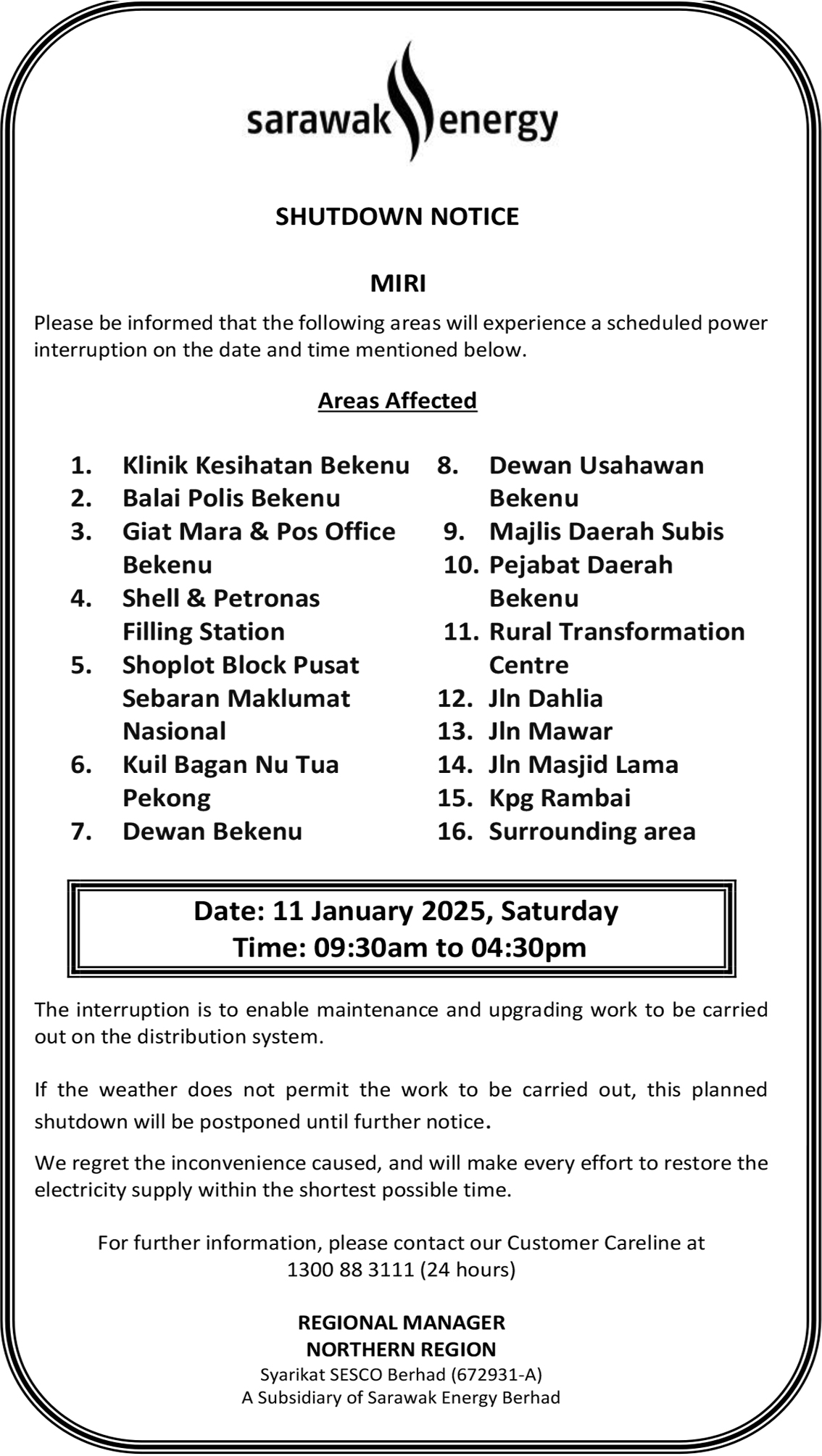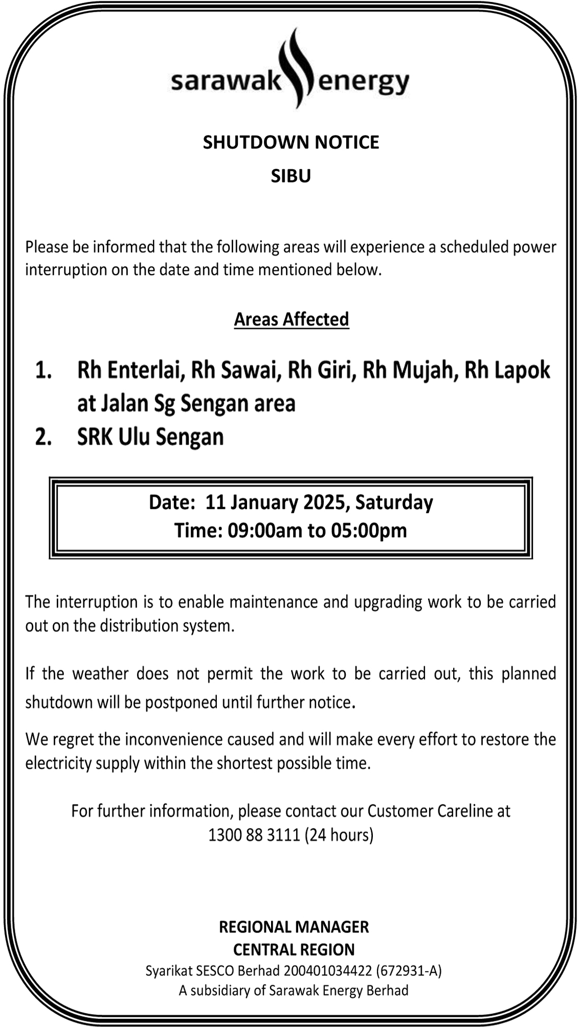 SHUTDOWN NOTICE (SIBU)