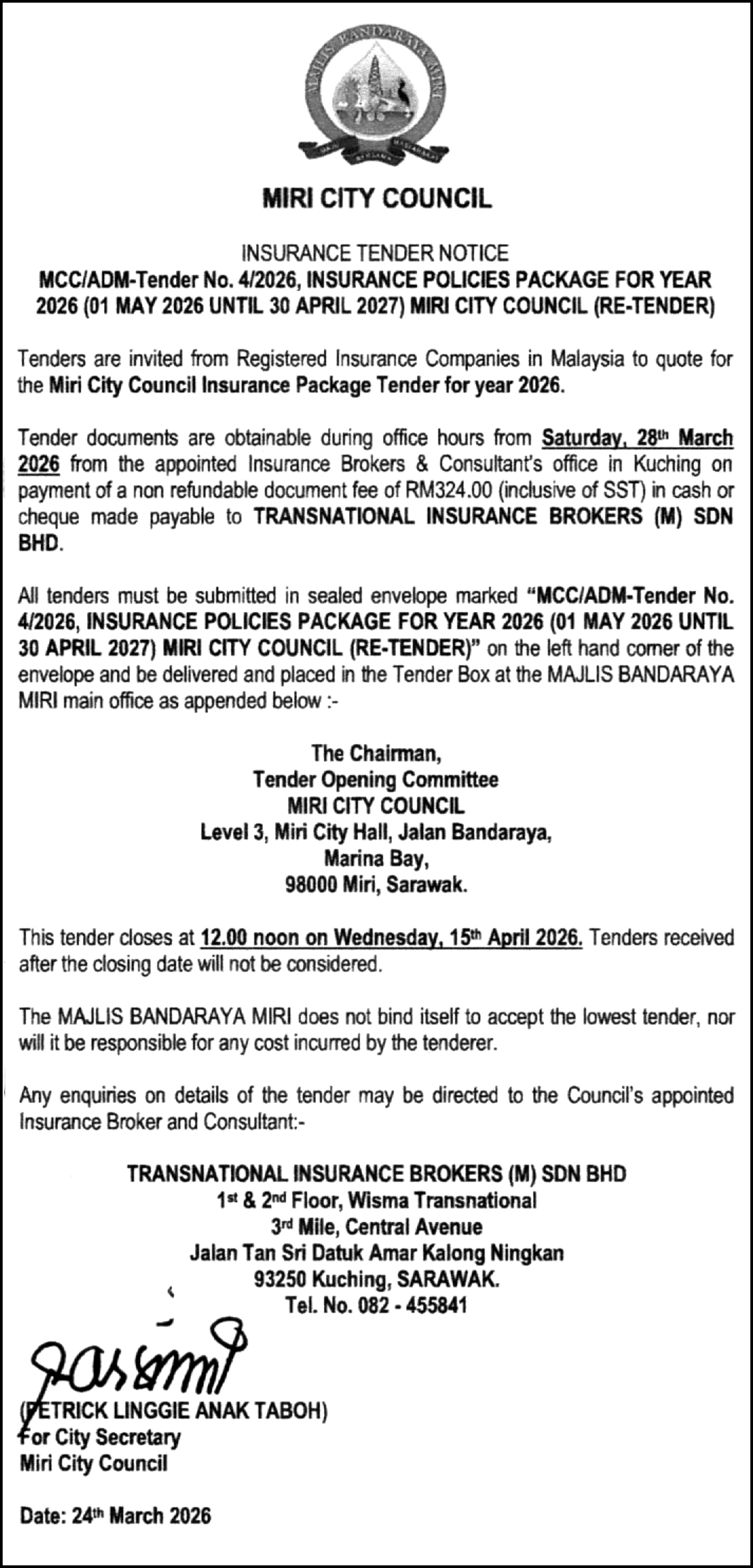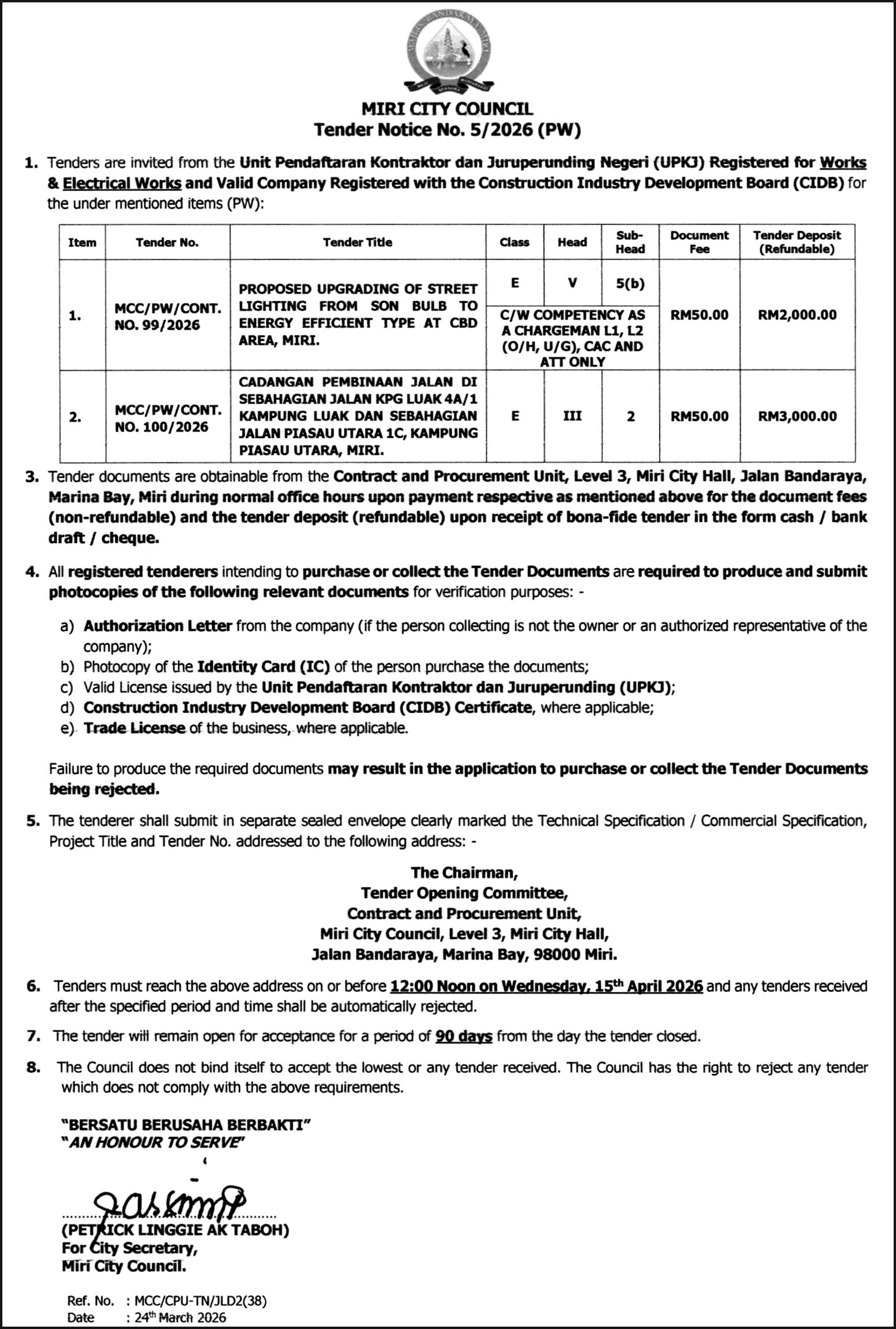 MCC TENDER NOTICE