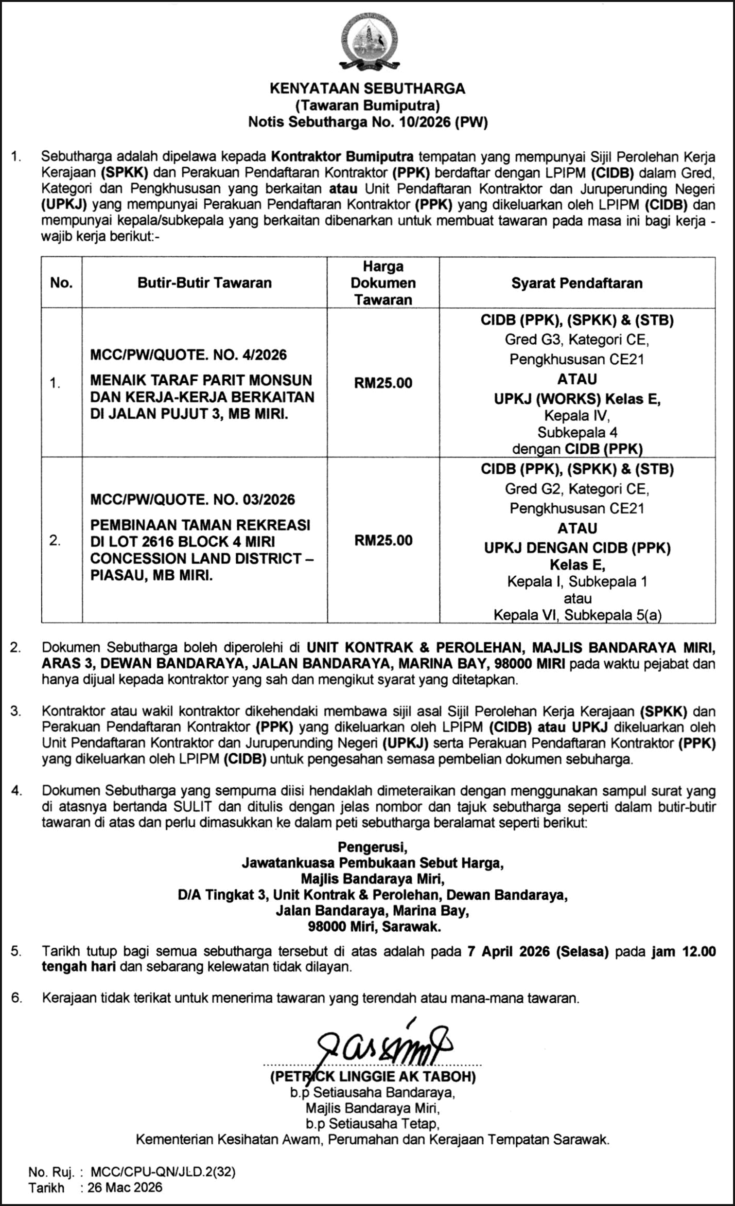 MCC QUOTATION NOTICE
