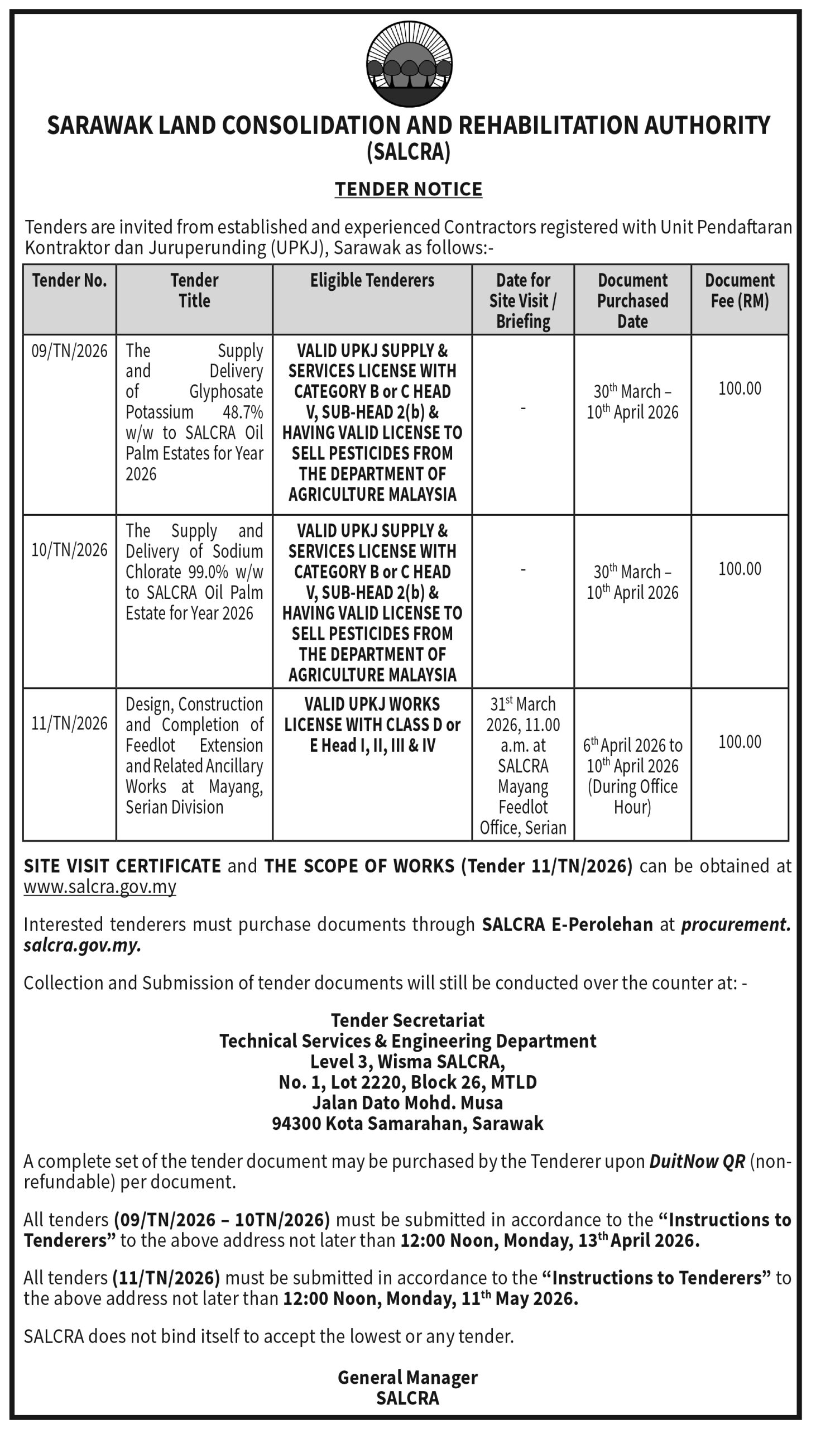 SALCRA TENDER NOTICE