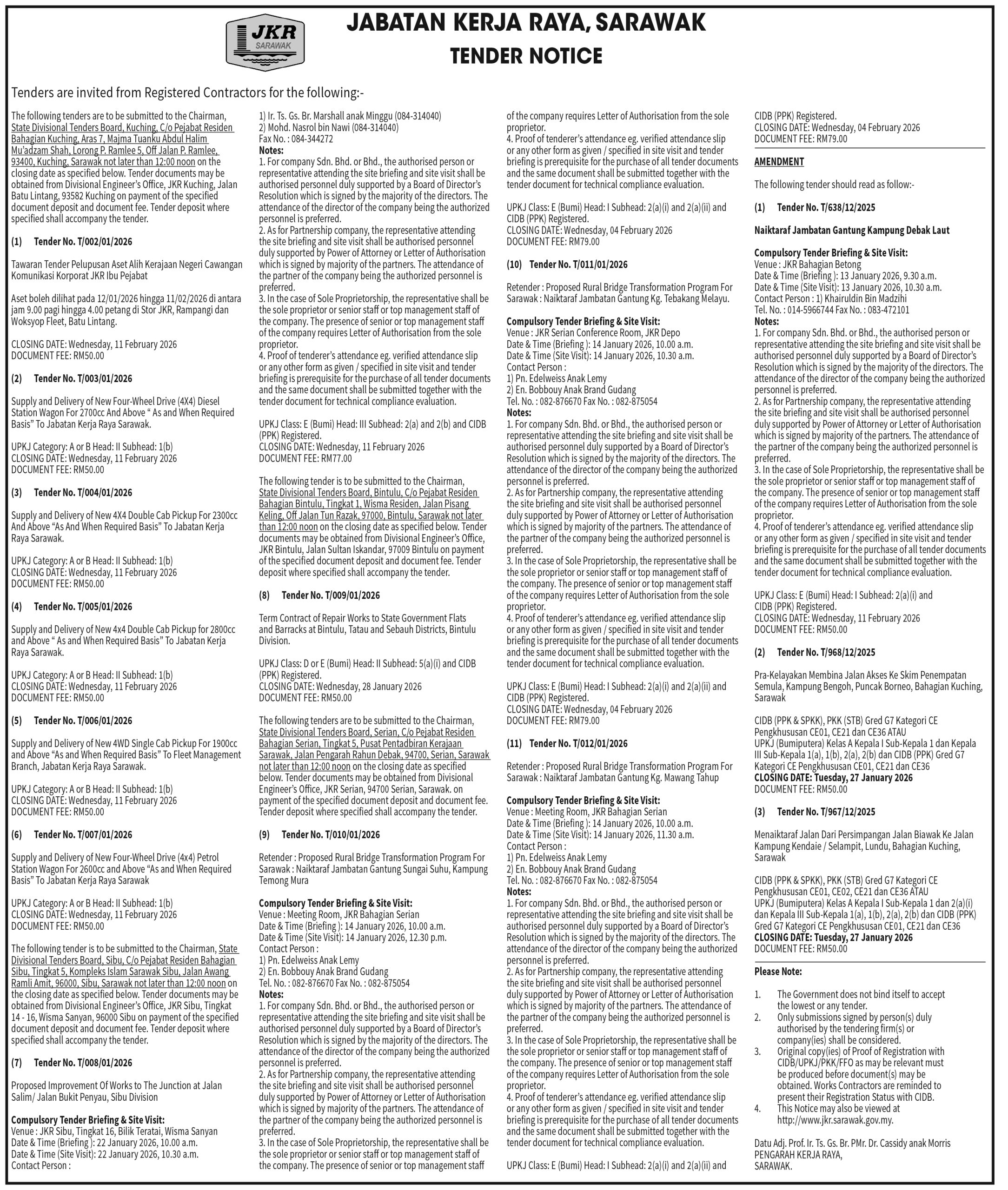 JKR TENDER NOTICE