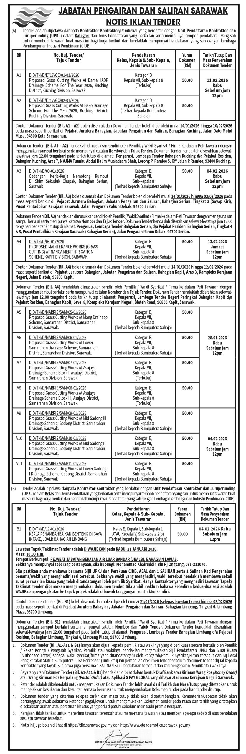 JABATAN PENGAIRAN TENDER NOTICE