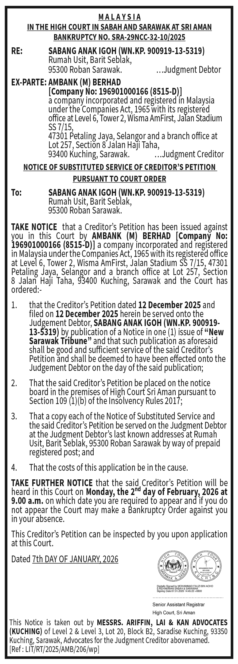 COURT ARIFFIN (SABANG VS AMBANK)