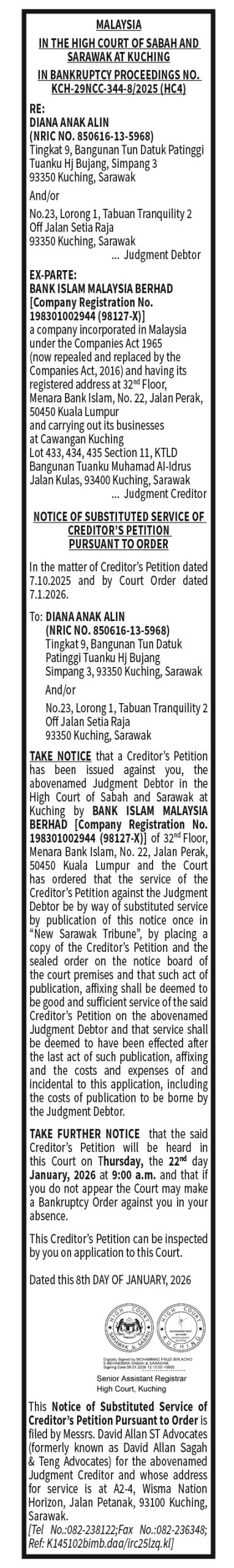 COURT DAVID ALLAN CREDITOR (DIANA VS BIMB)
