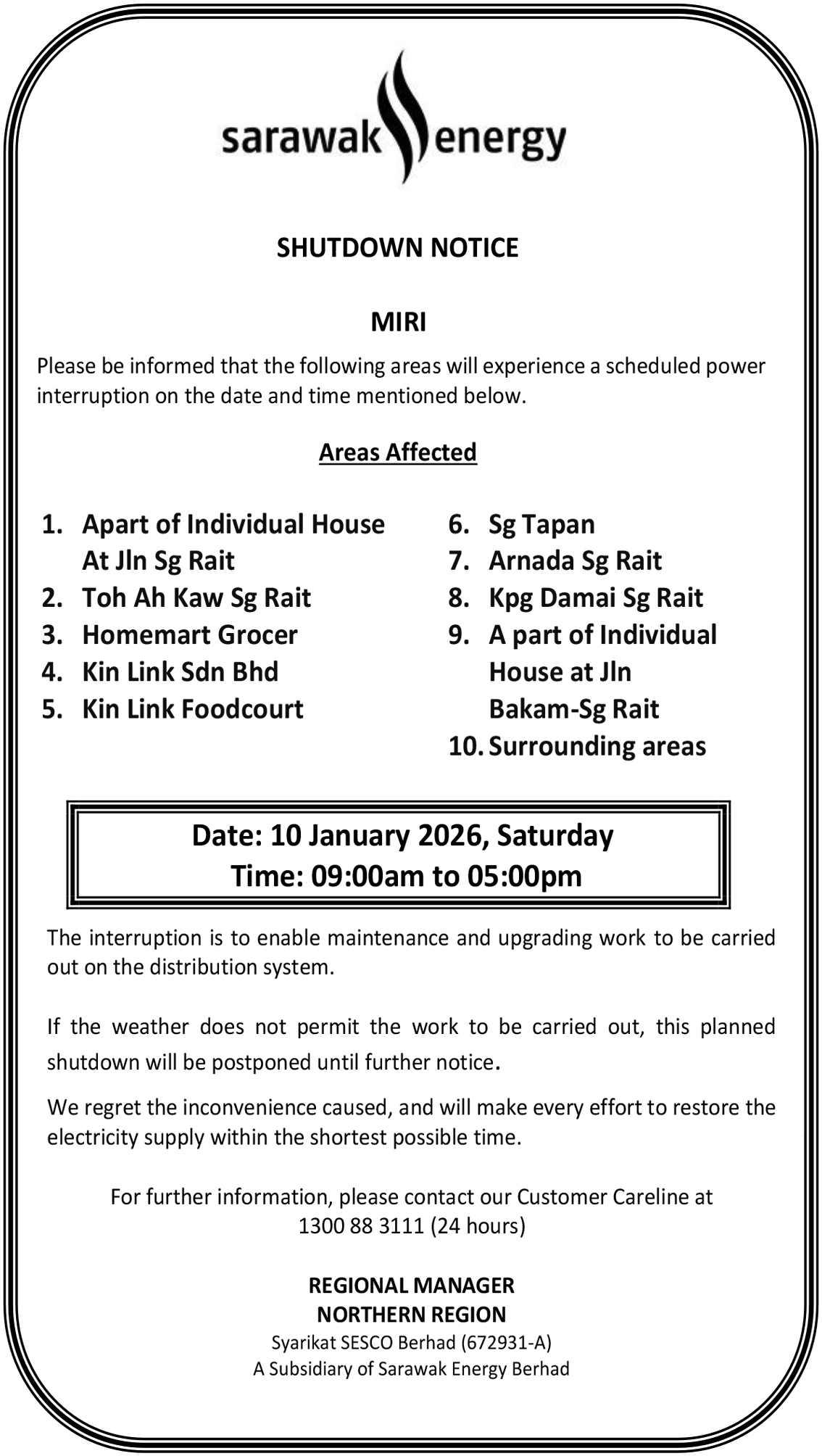 SESCO MIRI SHUTDOWN NOTICE (JLN SG RAIT)