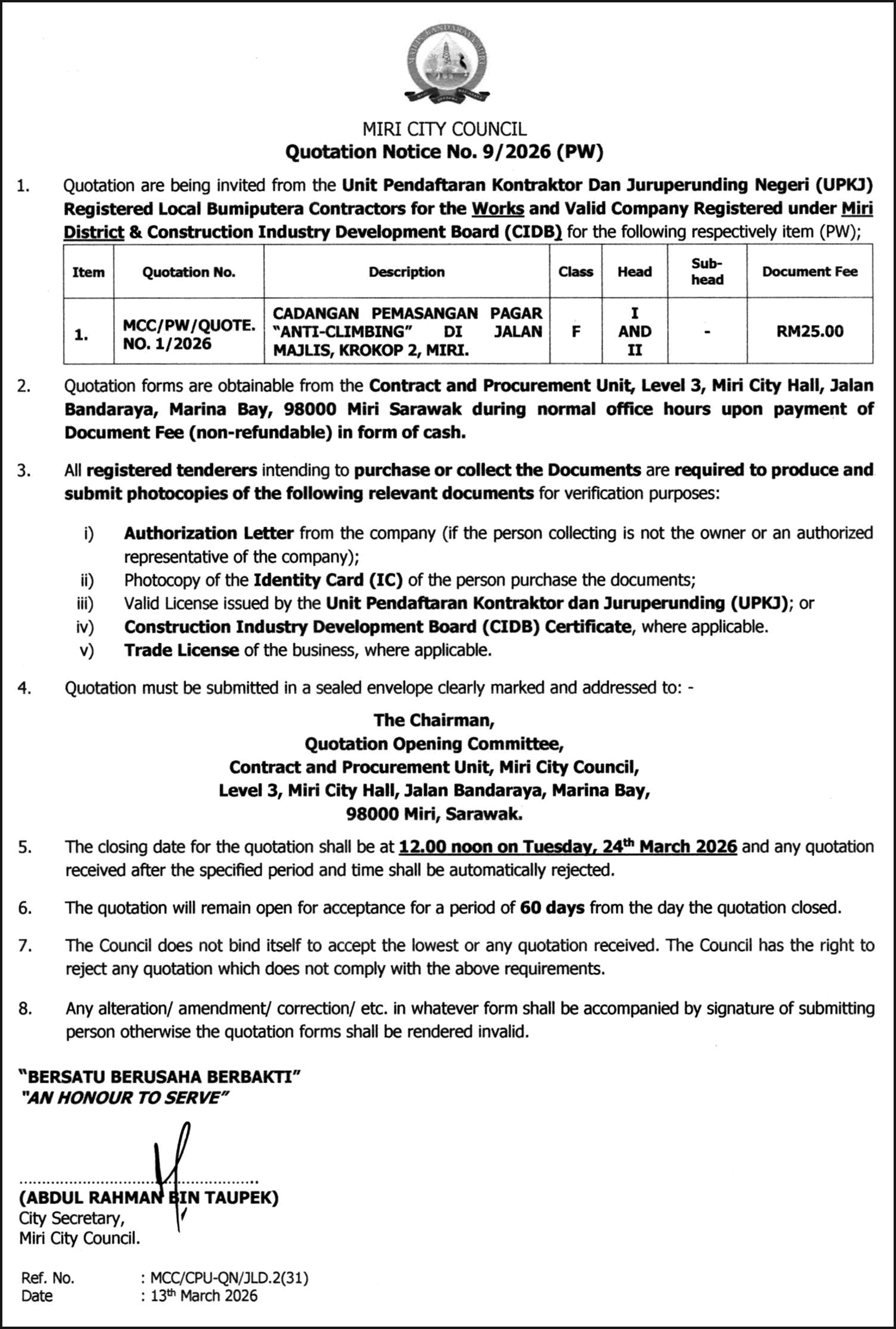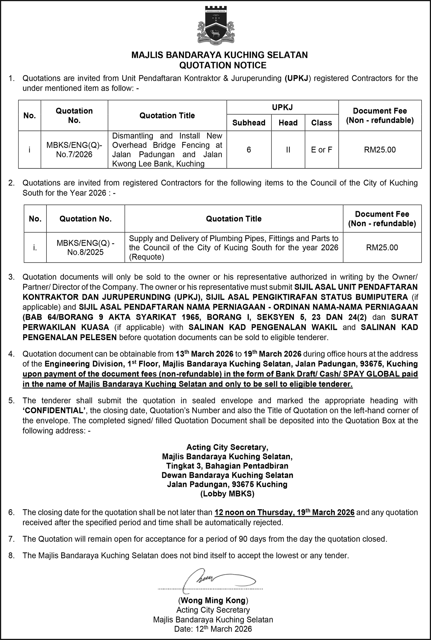 MBKS QUOTATION NOTICE