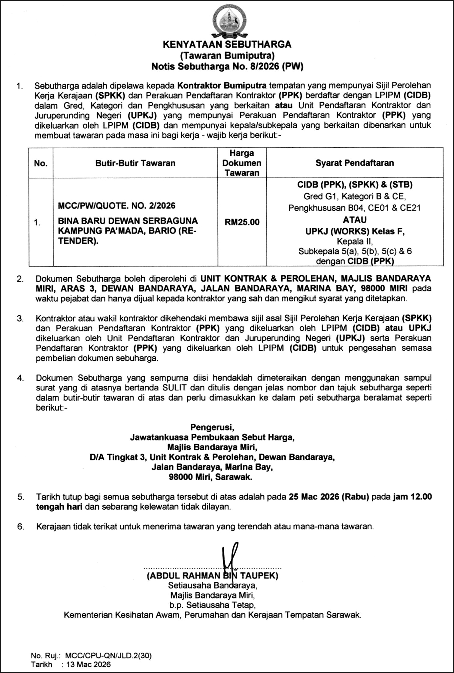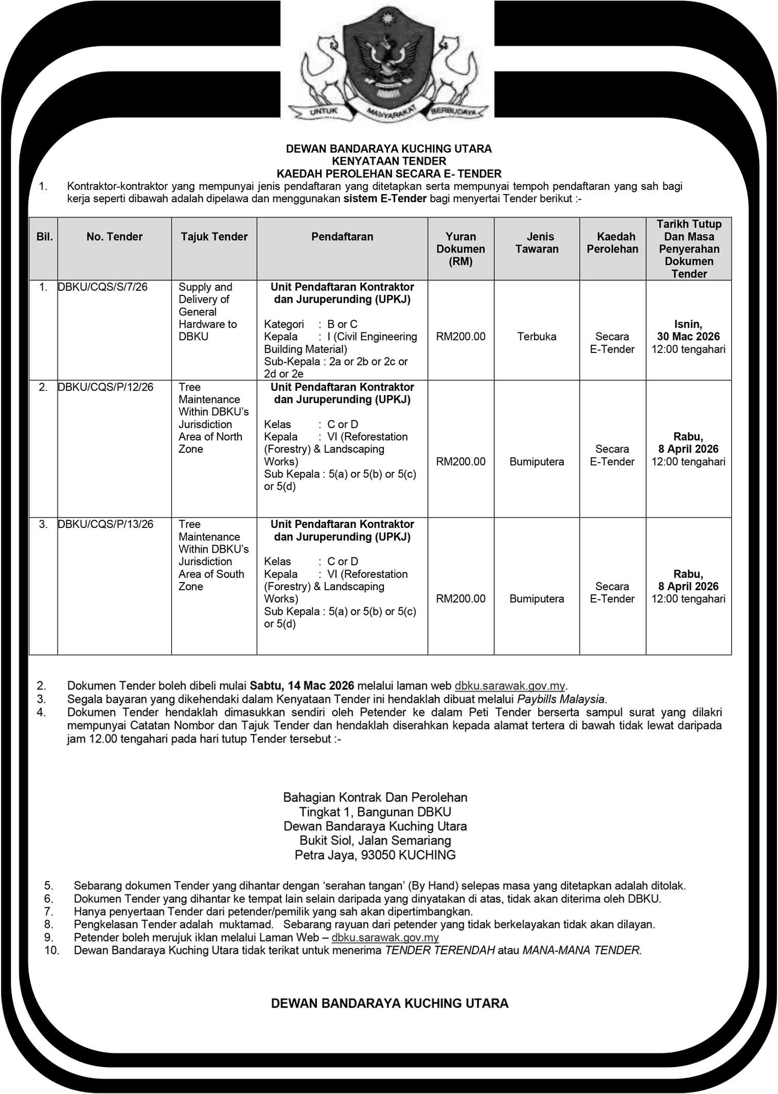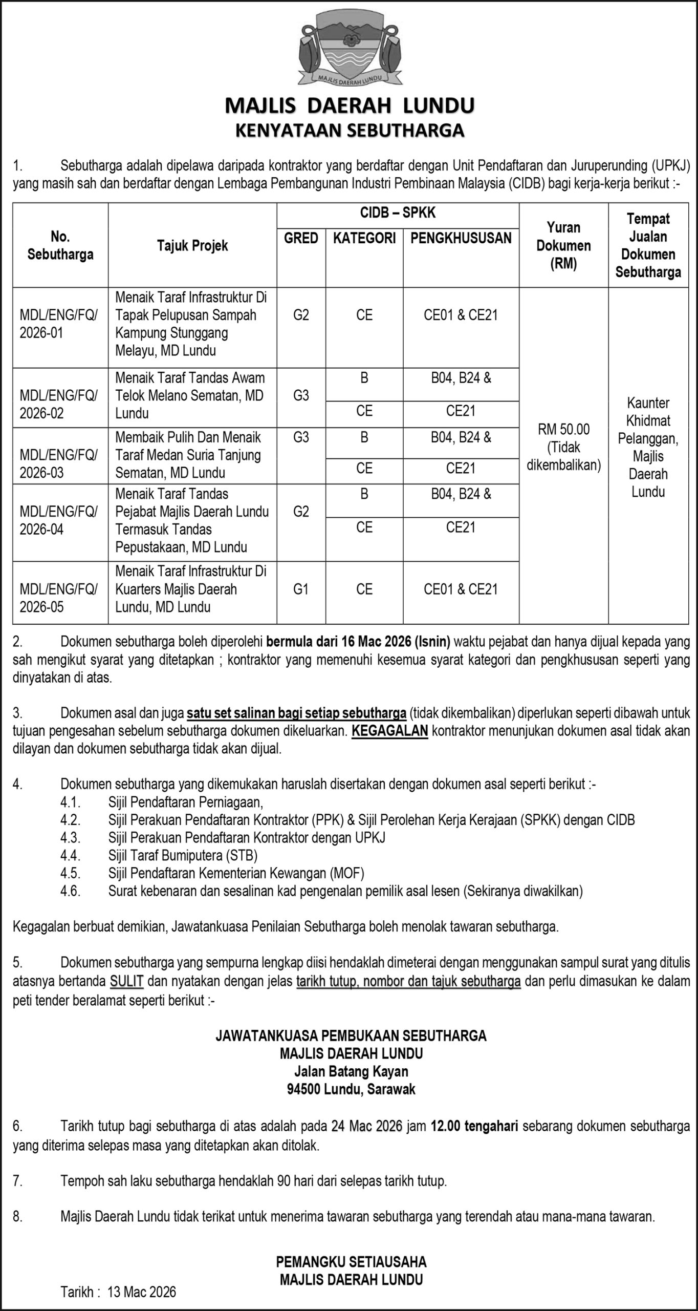 MAJLIS DAERAH LUNDU (KENYATAAN SEBUTHARGA)