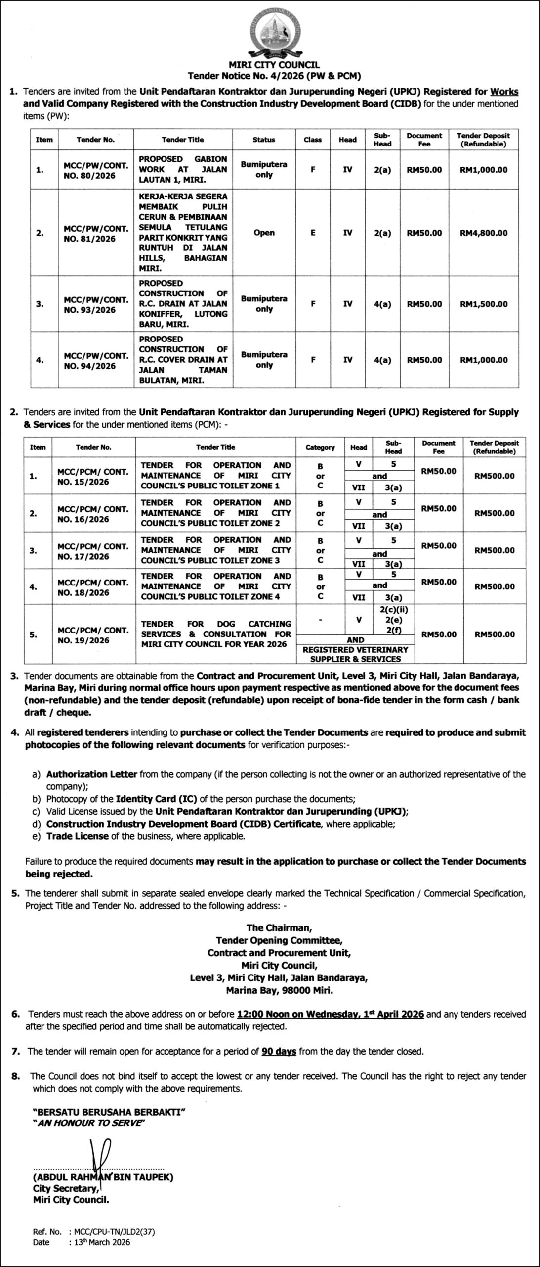 MMC TENDER NO 4