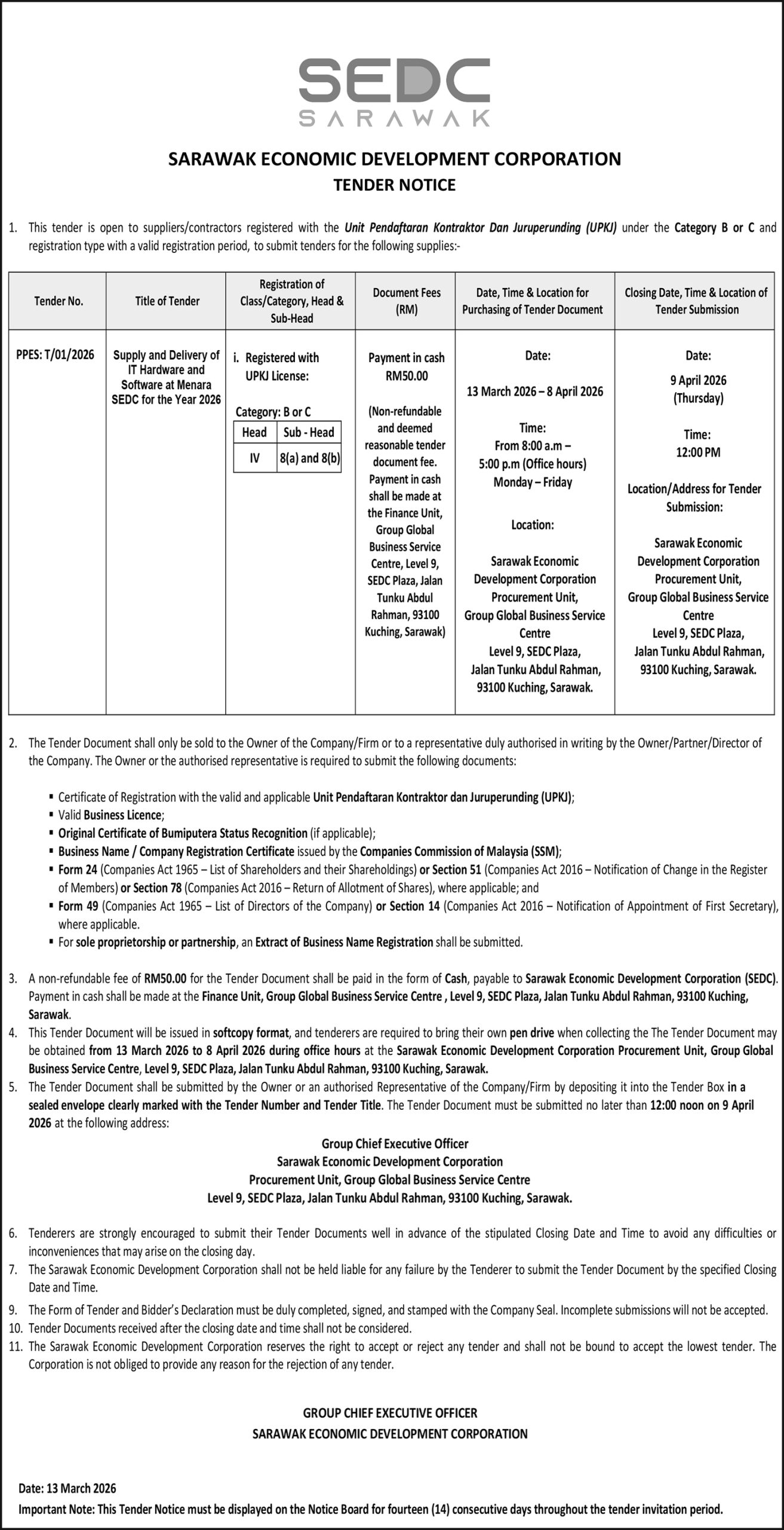 SEDC TENDER NOTICE
