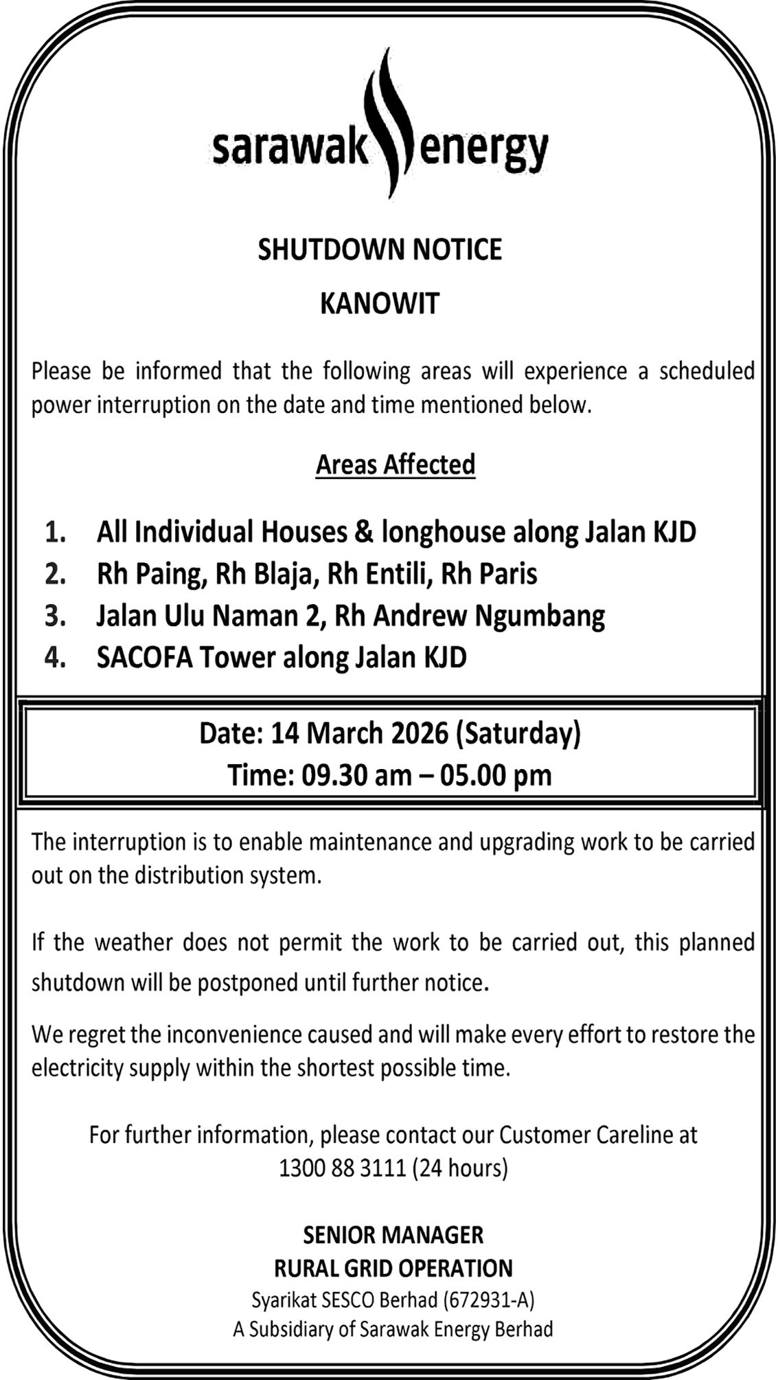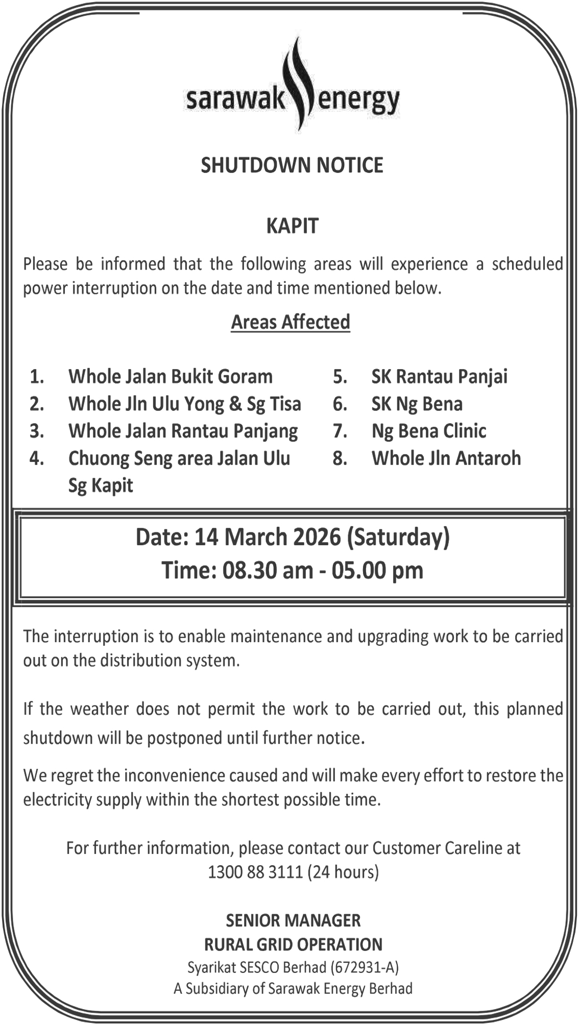 SESCO KAPIT (JLN BUKIT GORAM)