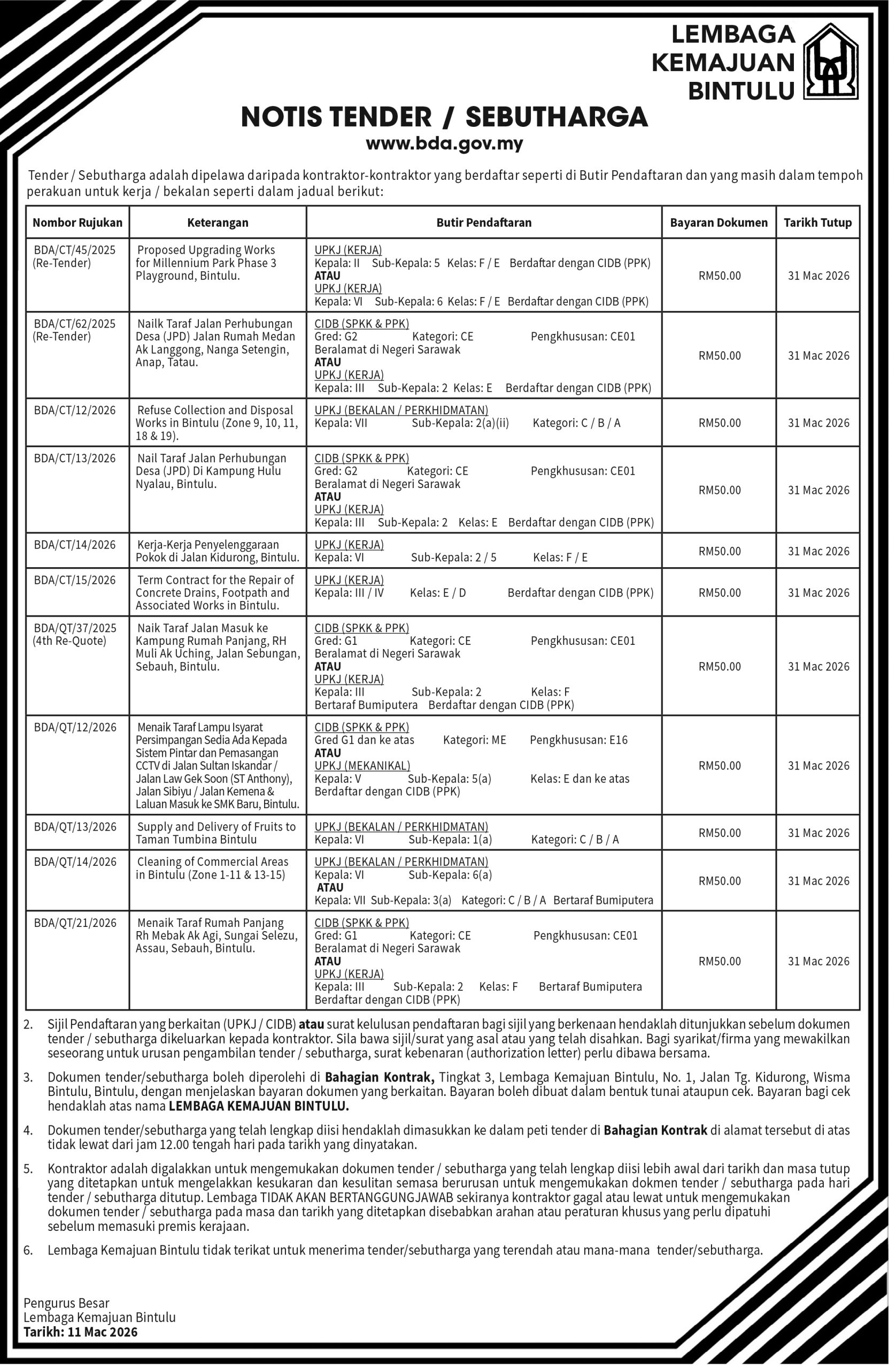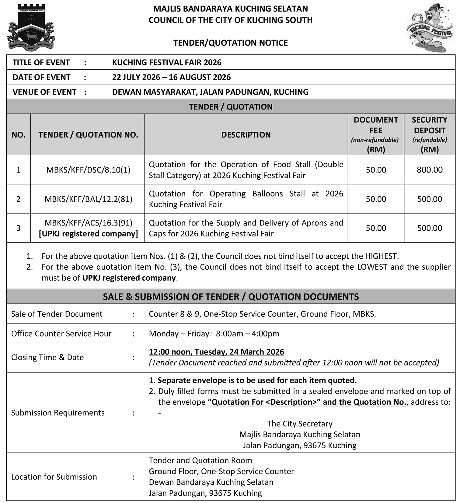 MBKS TENDER/QUOTATION NOTICE