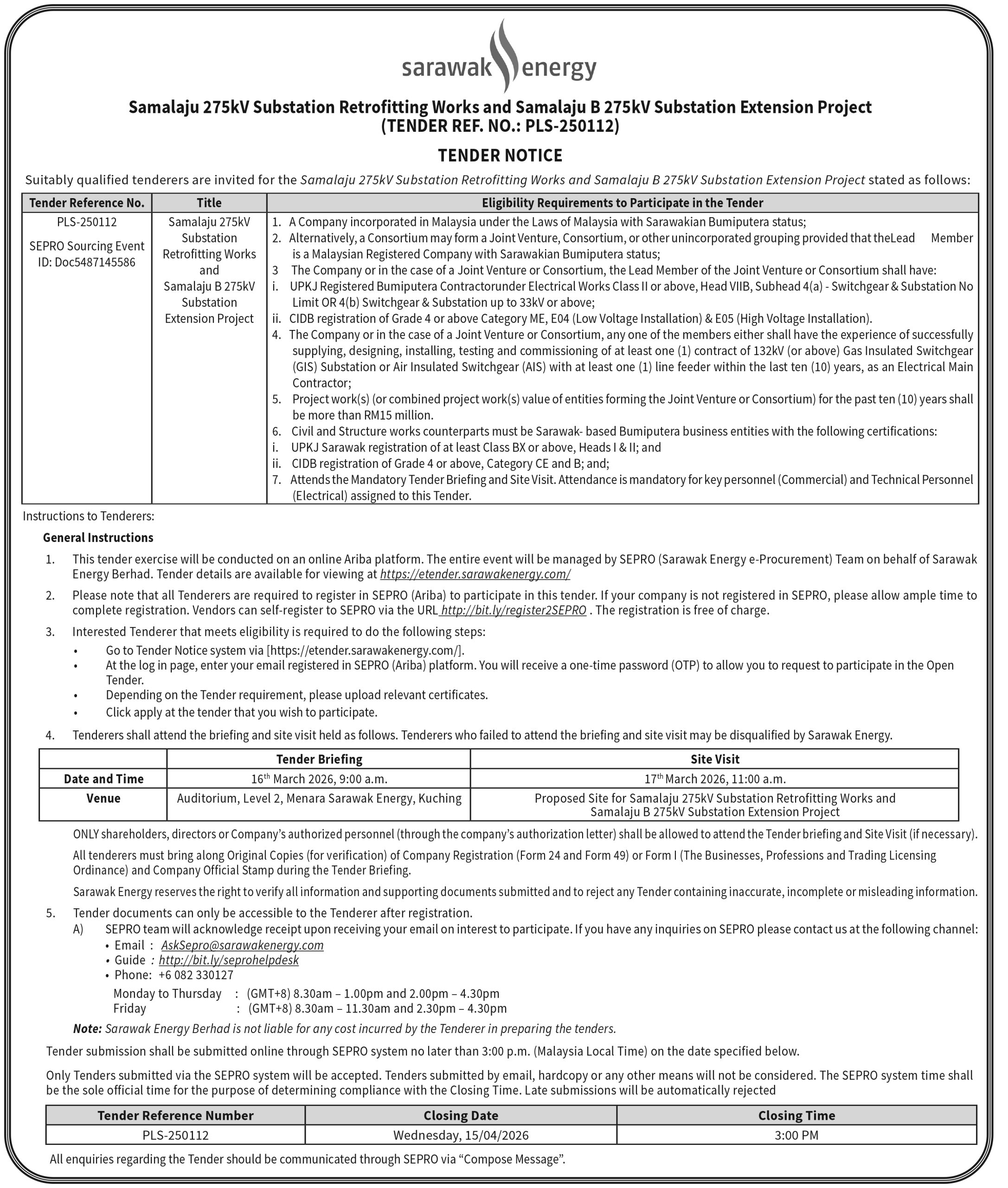 SEB TENDER NOTICE
