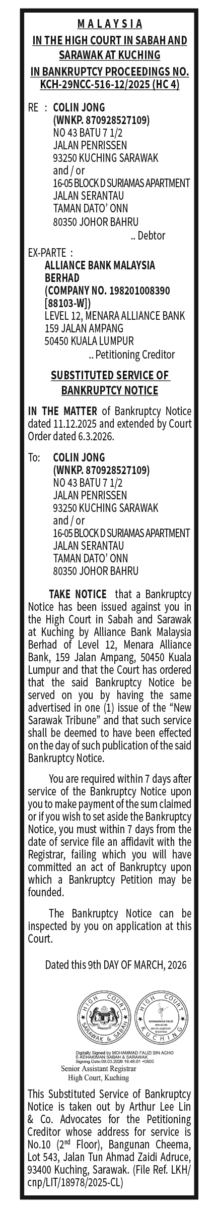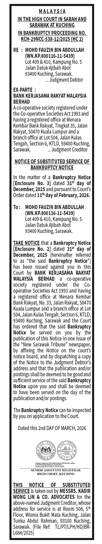 KADIR WONG COURT NOTICE