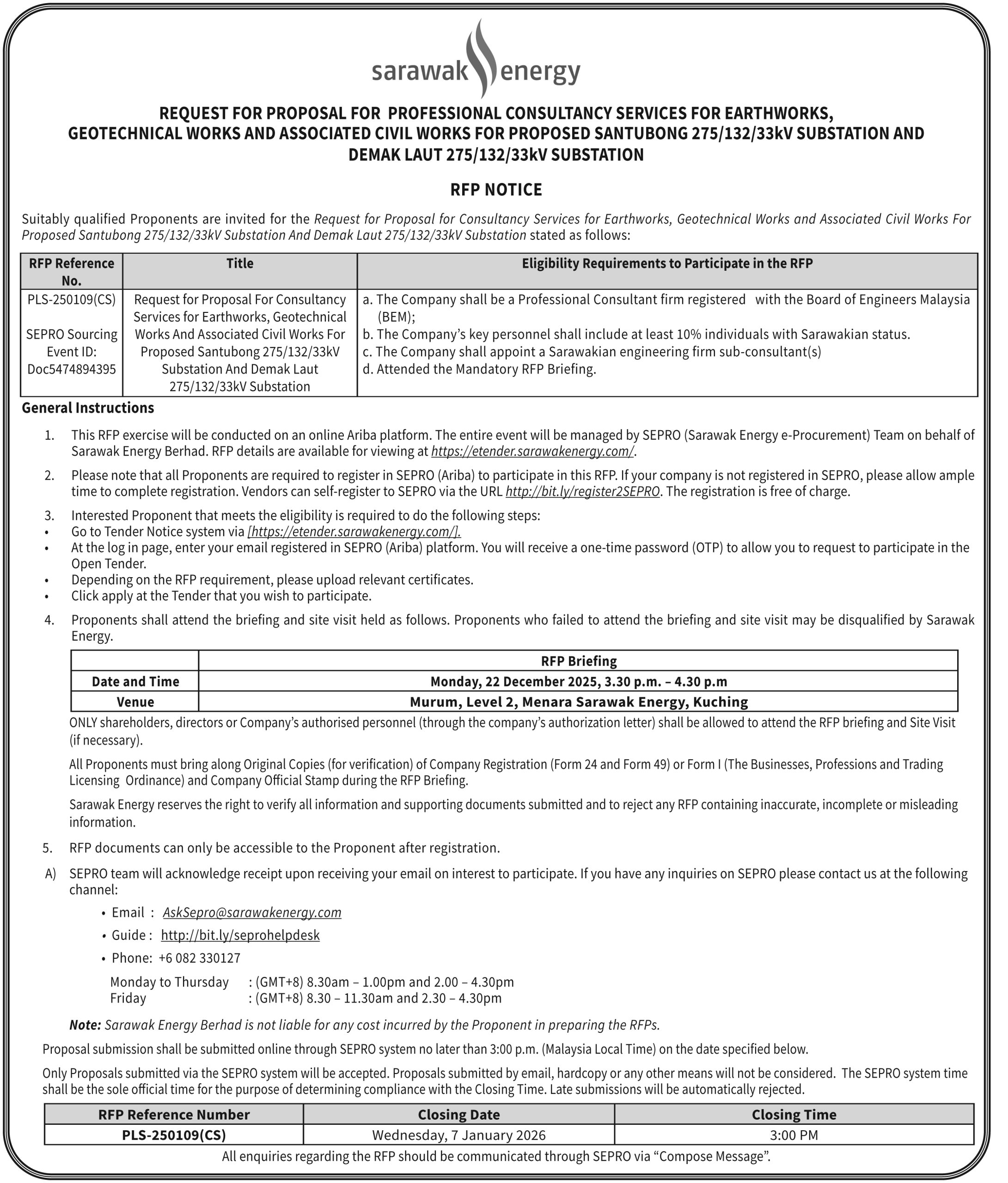 SEB RFP NOTICE PLS-250109(CS)