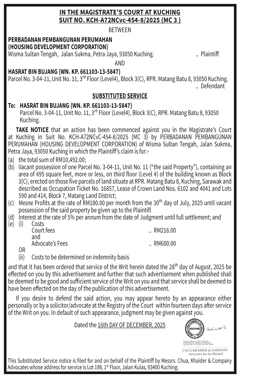 COURT CHUA KHAIDER NOTICE (HASRAT VS HDC)