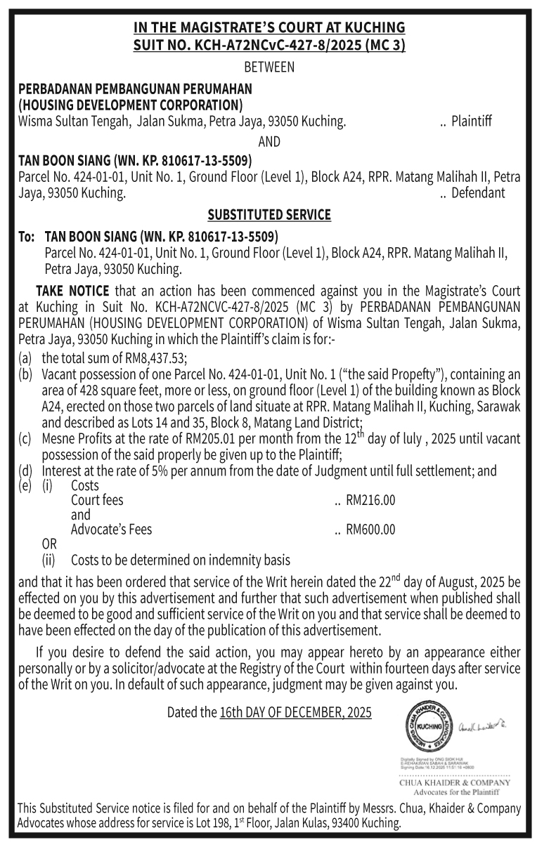 COURT CHUA KHAIDER NOTICE (TAN VS HDC)