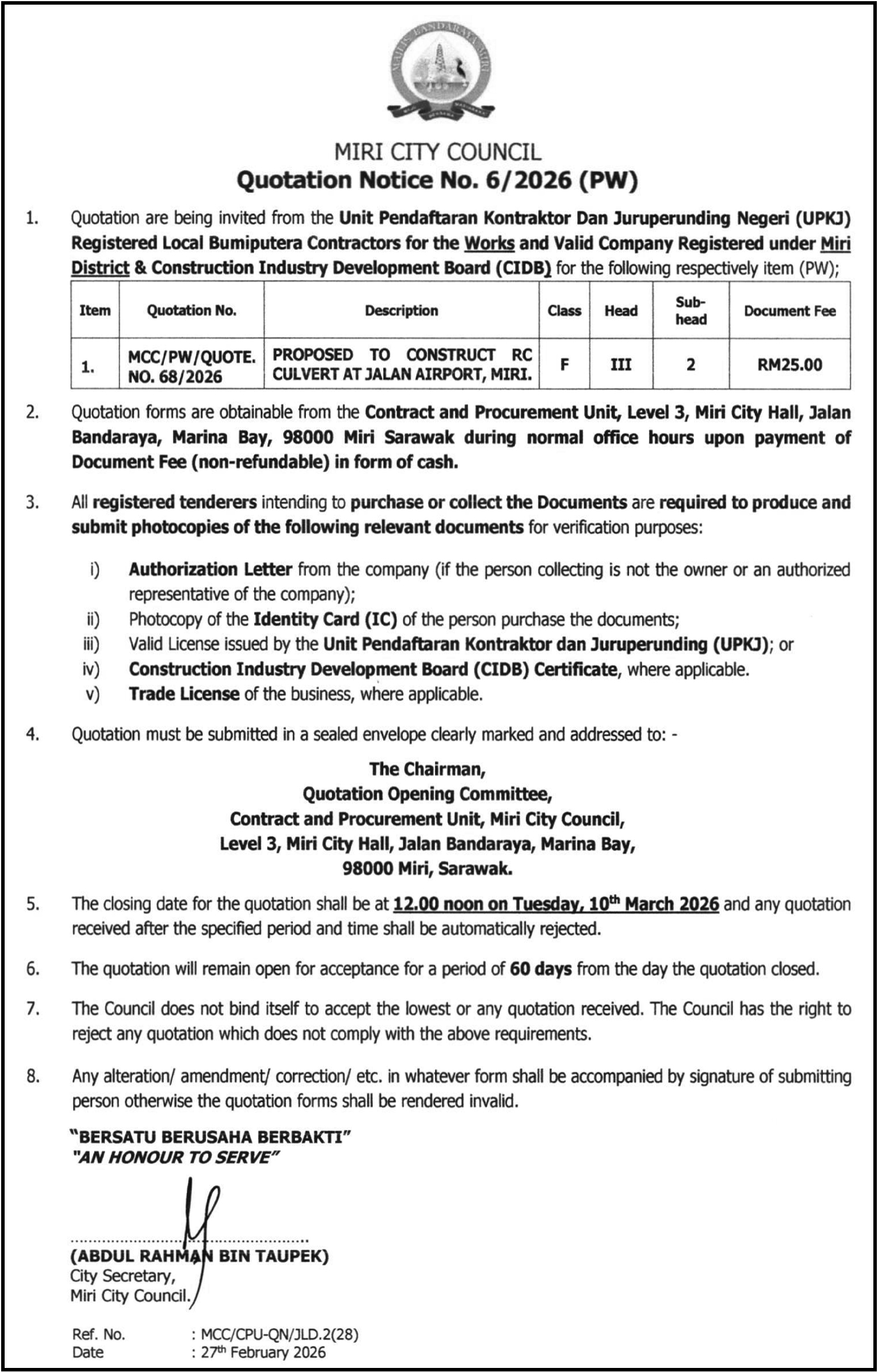 MCC QUOTATION NOTICE NO. 6