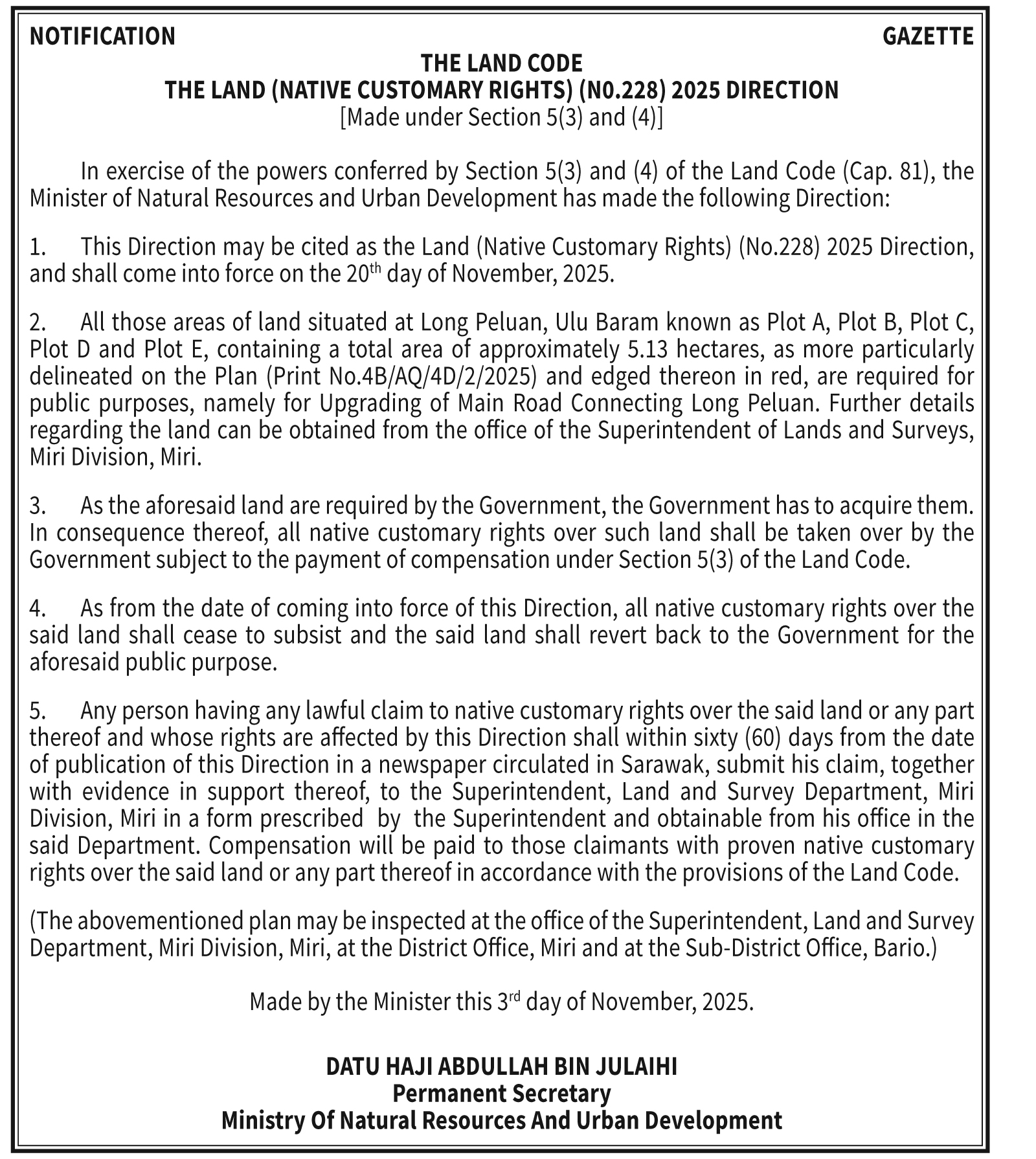 THE LAND CODE NO. 228