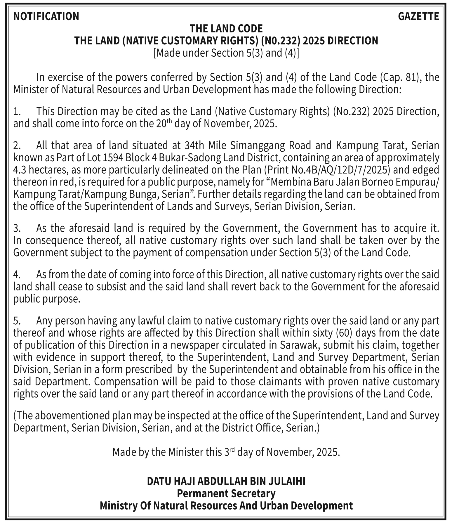 THE LAND CODE NO. 234