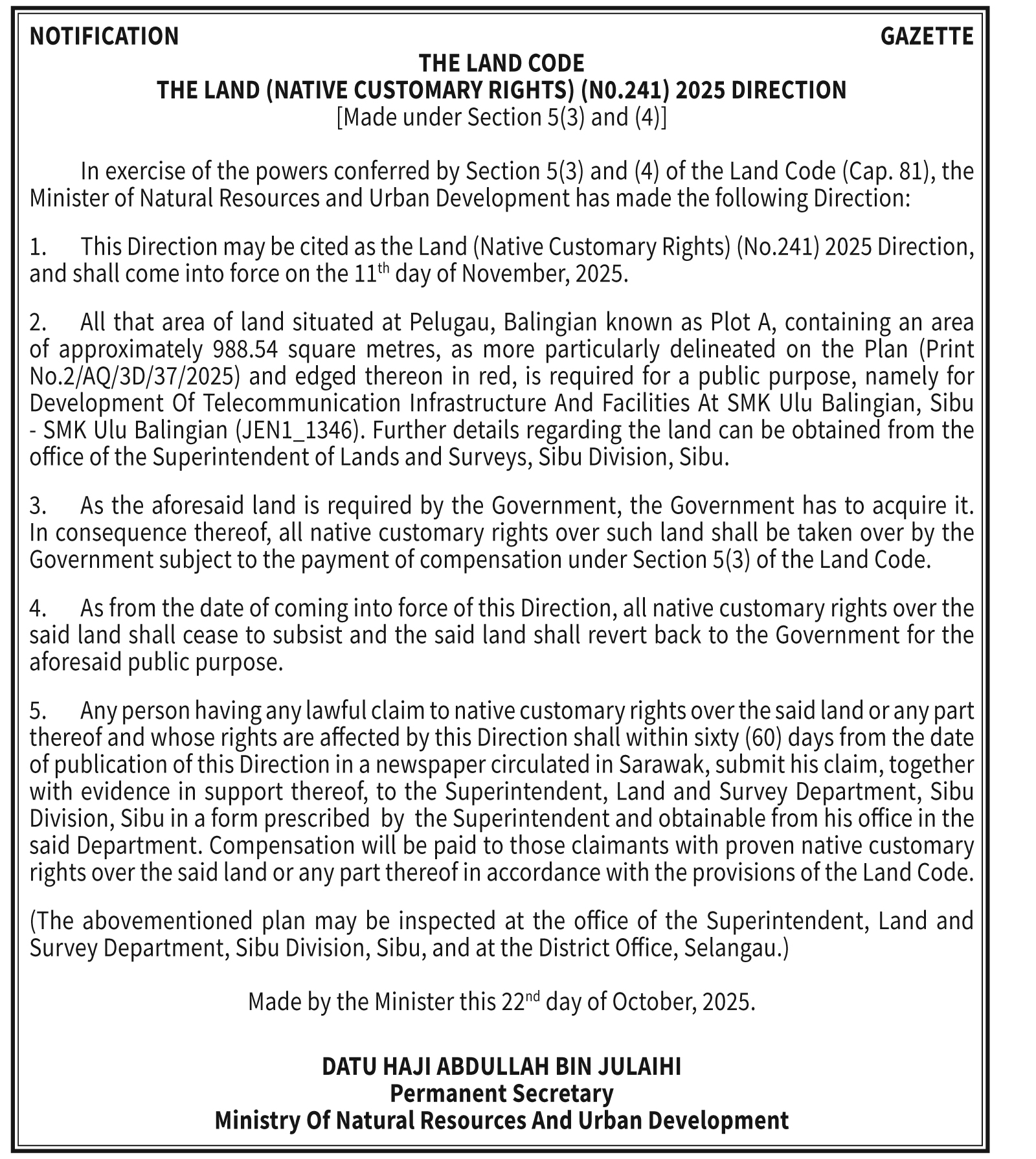 THE LAND CODE NO. 241