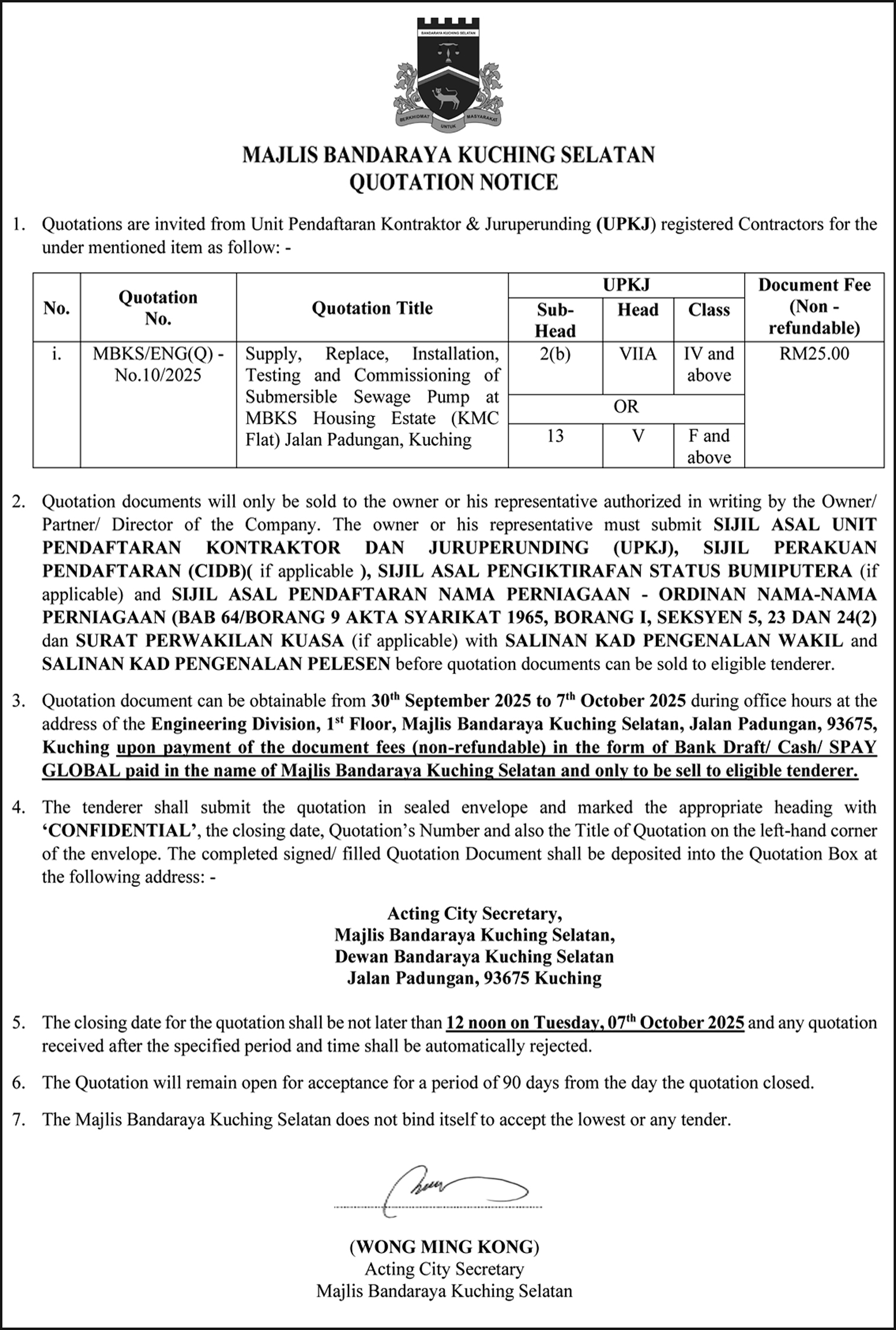 MBKS QUOTATION NOTICE