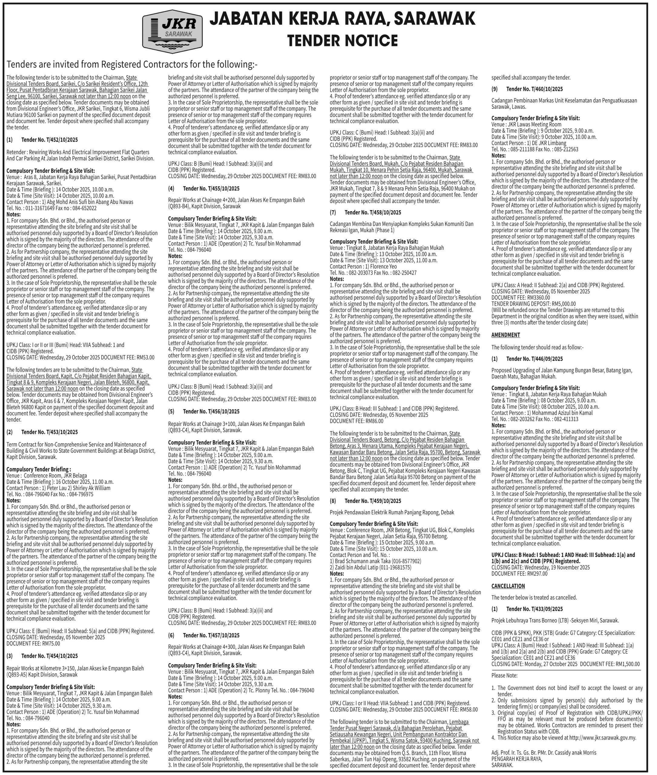 JKR TENDER NOTICE