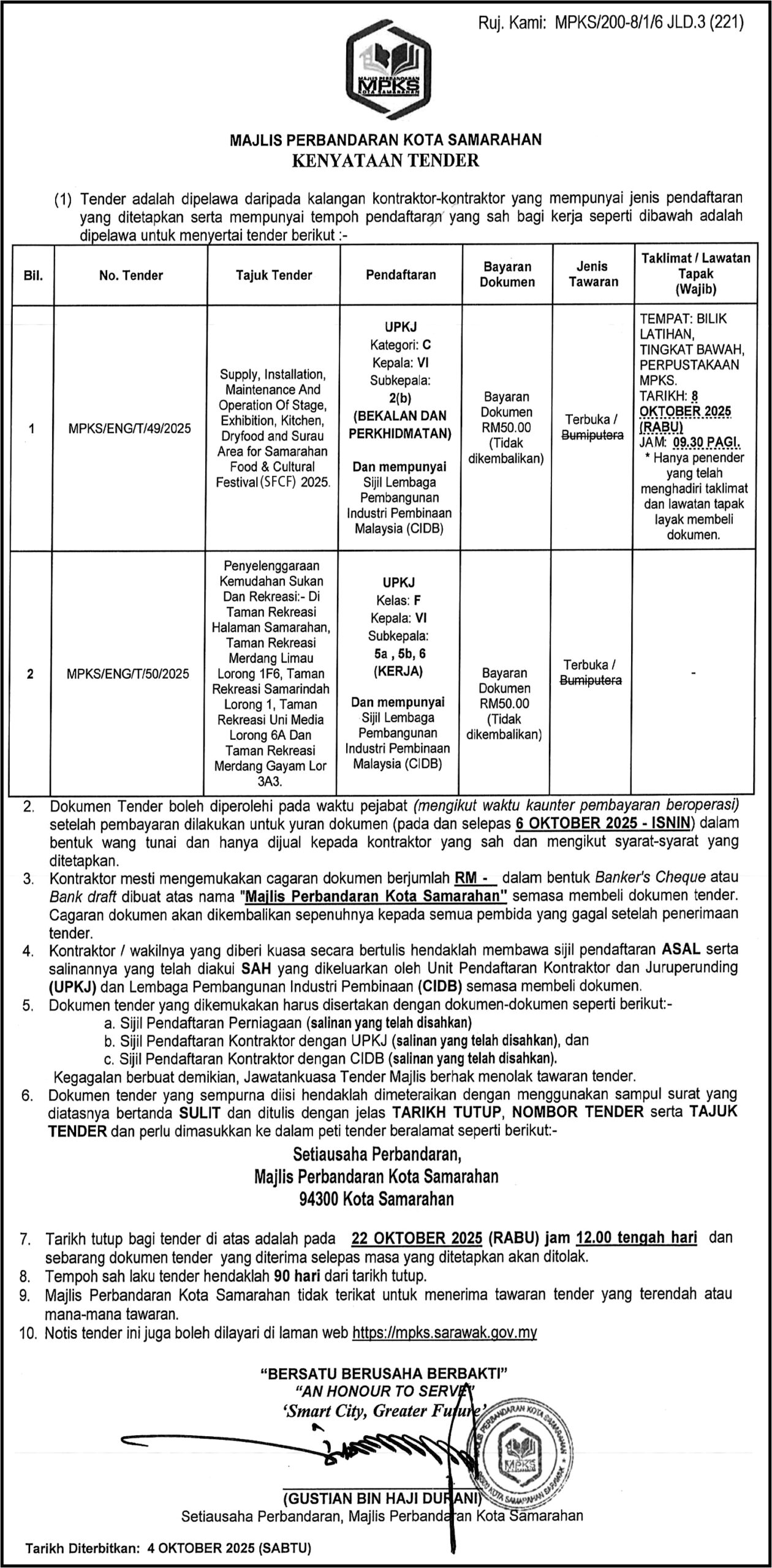 MPKS (KENYATAAN TENDER)