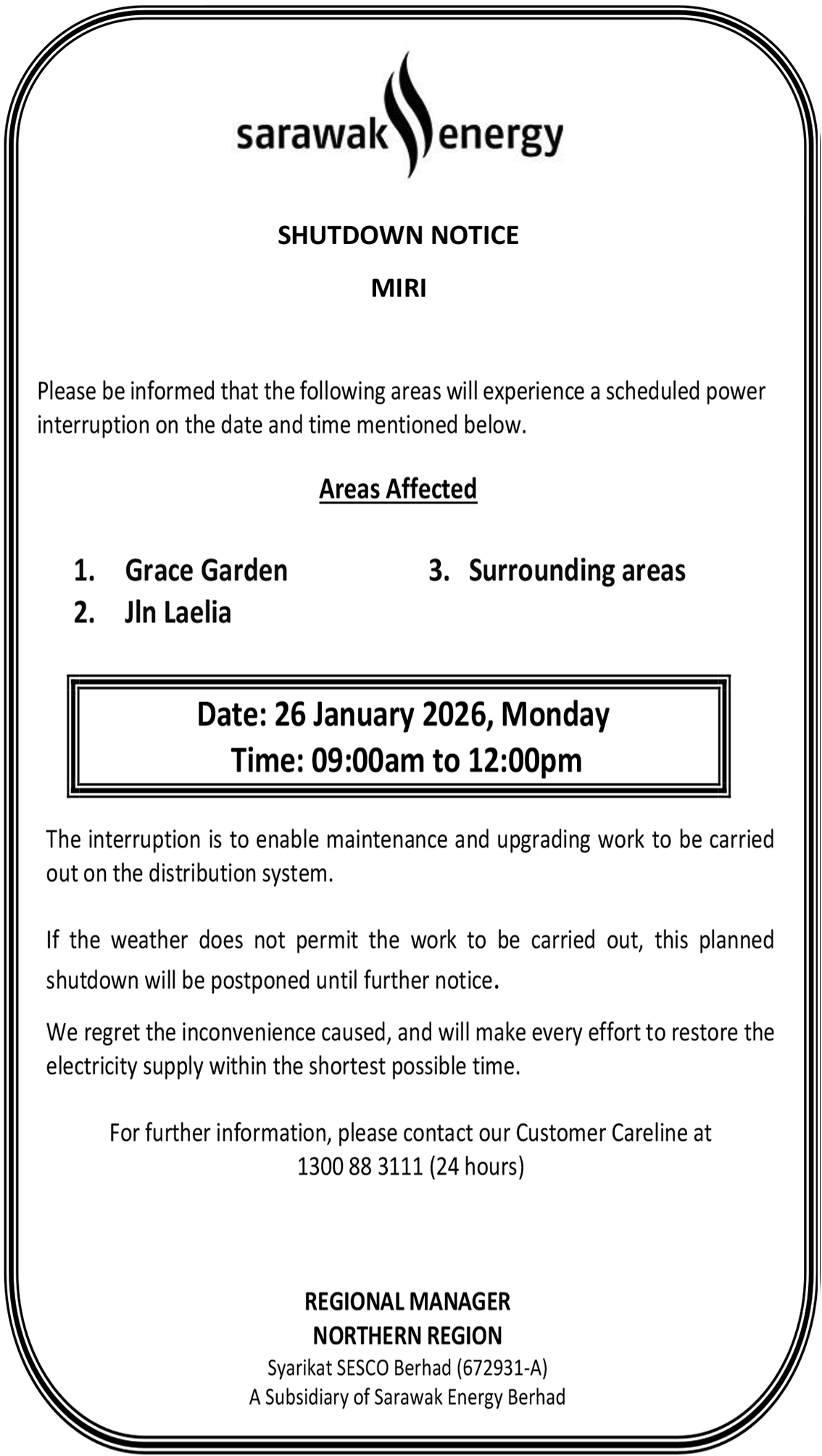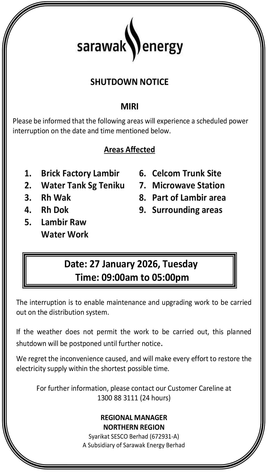 SESCO MIRI SHUTDOWN NOTICE (TIONG HEE)