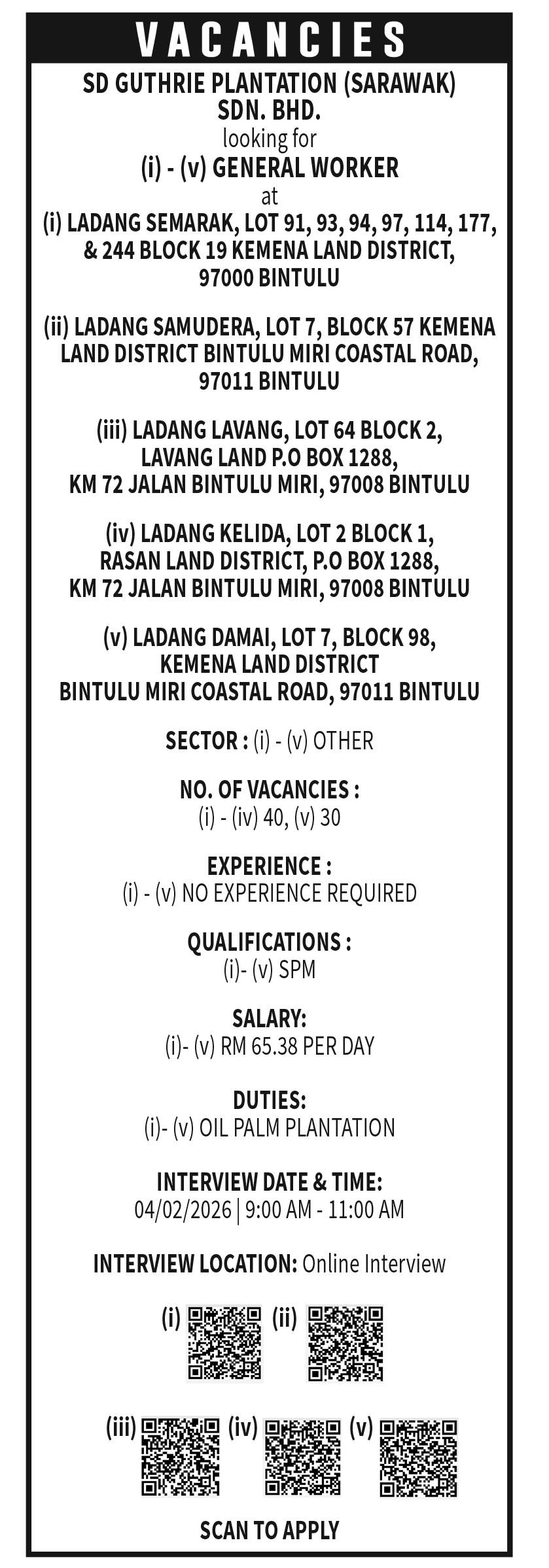 LABOUR VACANIES (SHIN YANG FORESTRY)