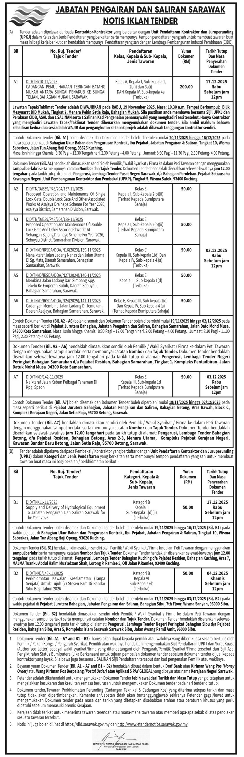 JABATAN PENGAIRAN DAN SALIRAN SARAWAK (TENDER NOTICE)