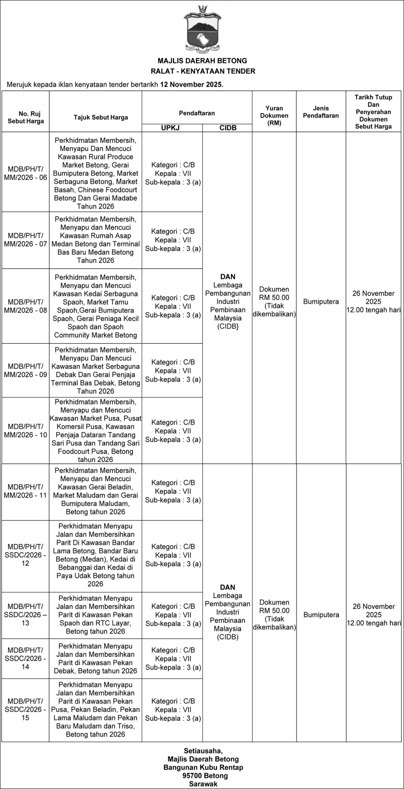 MAJLIS DAERAH BETONG RALAT KENYATAAN TENDER