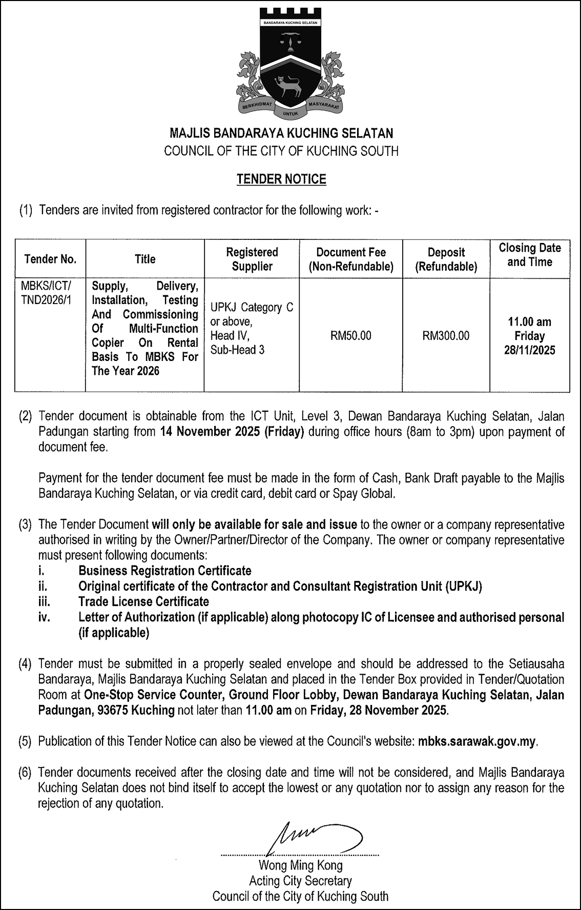 MBKS TENDER NOTICE