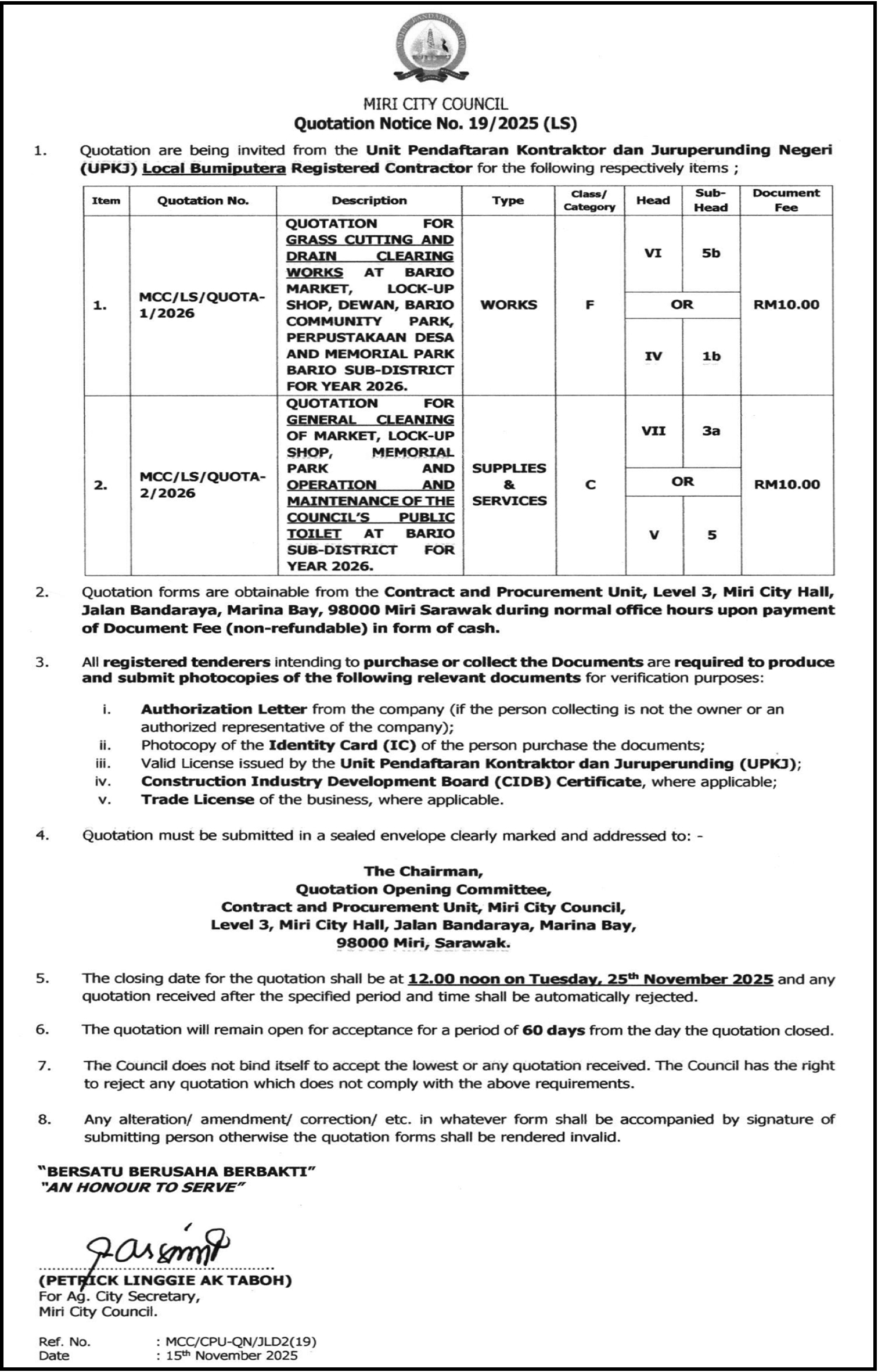 MIRI CITY COUNCIL (QUOTATION NOTICE)