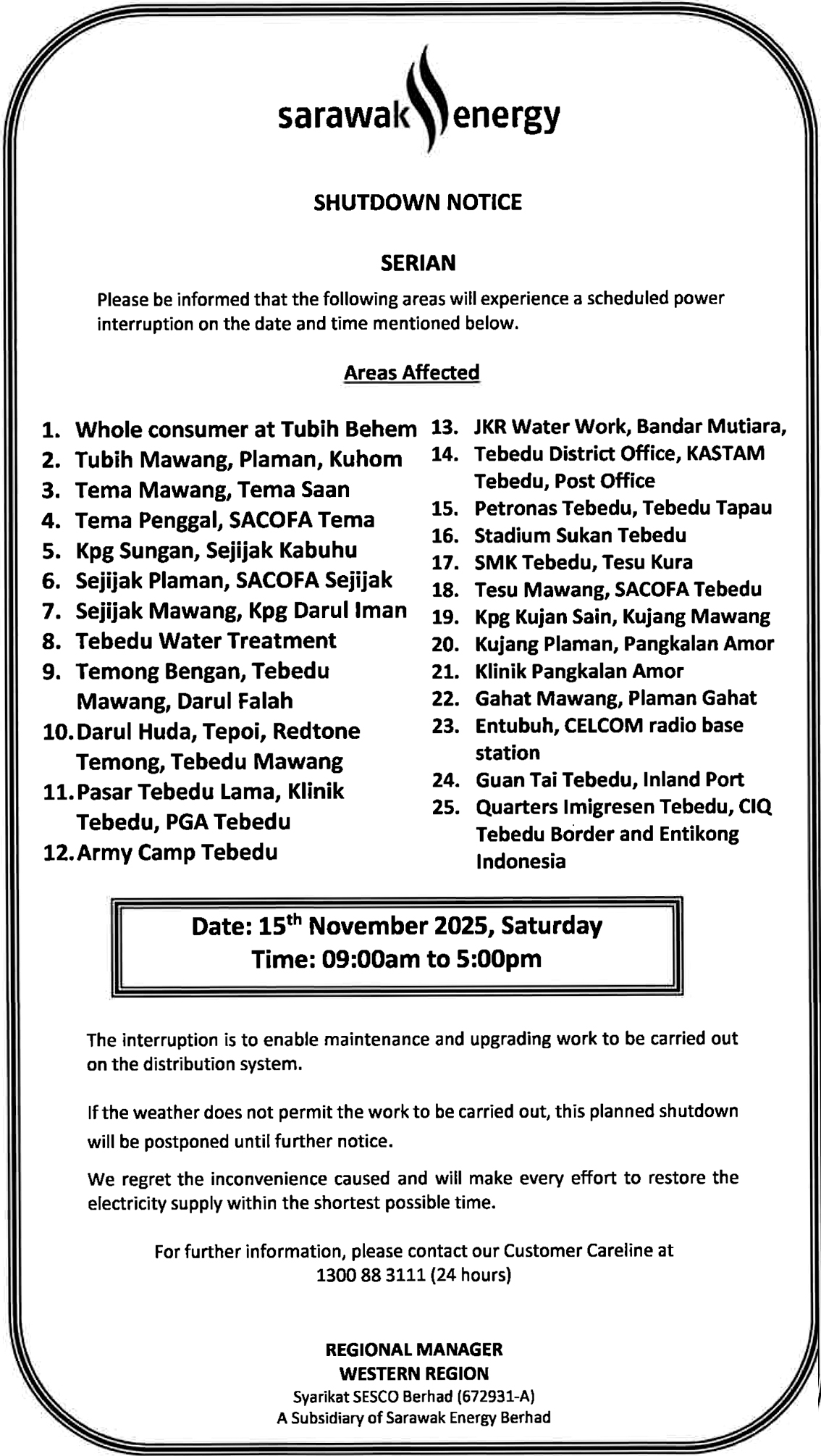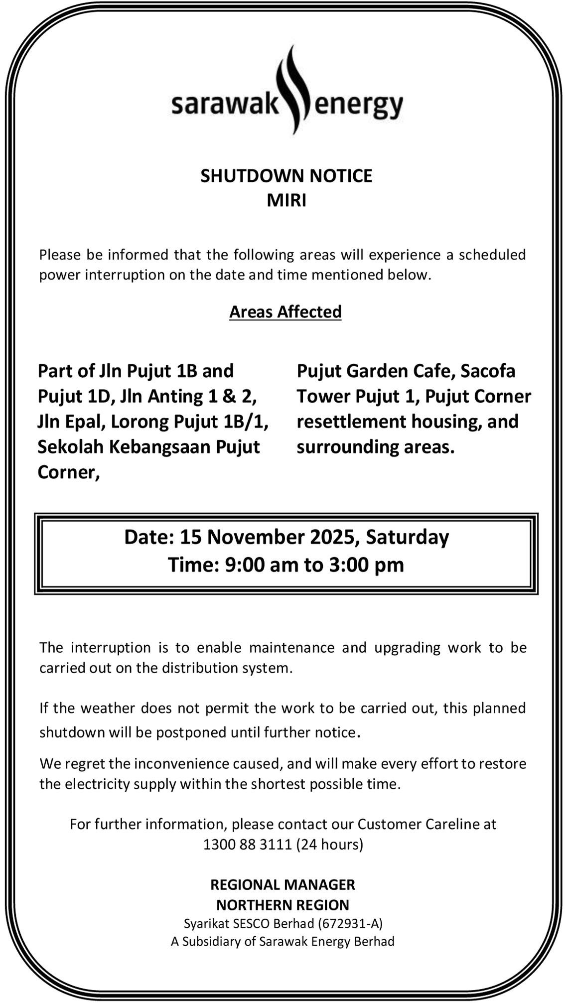 SESCO MIRI SHUTDOWN NOTICE (JLN PUJUT)