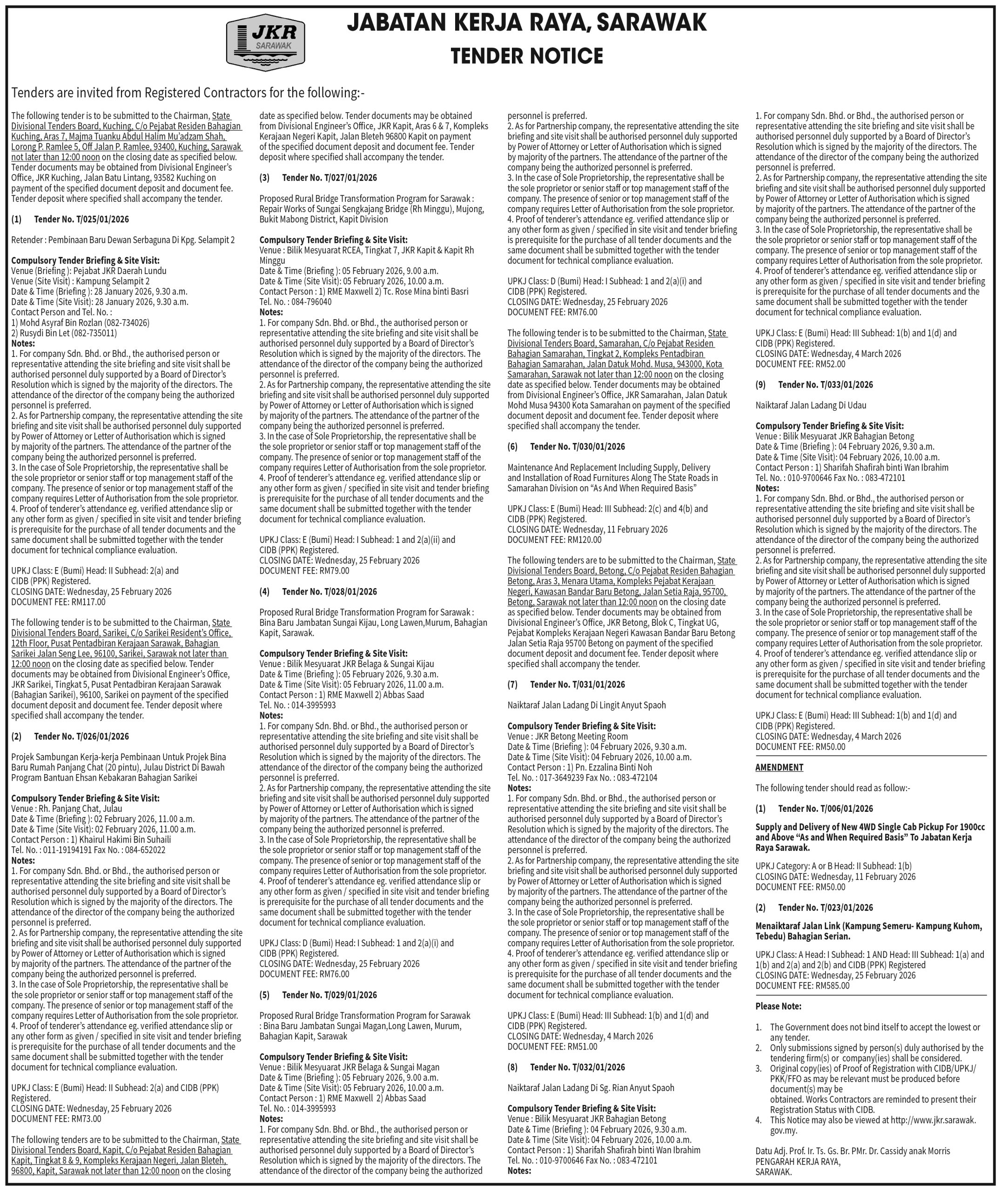 JKR TENDER NOTICE